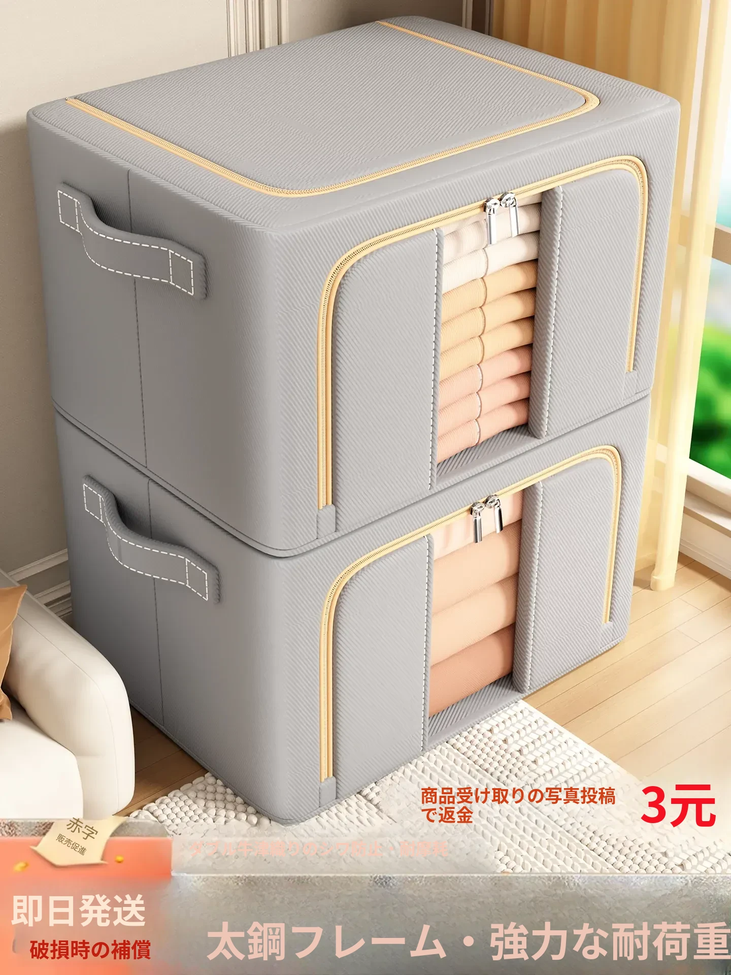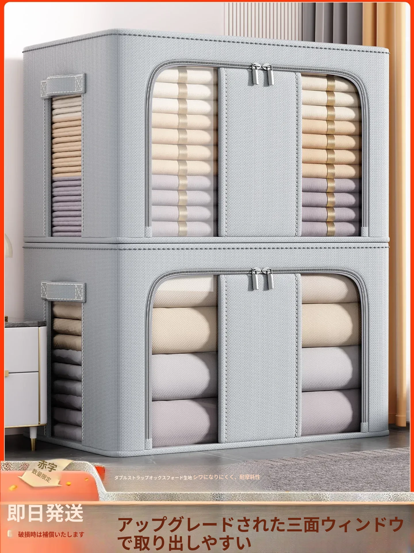 大容量布製衣類収納ボックス|折りたたみ可能な万能収納箱|衣類・布団もすっきり整理!お家のクローゼットに最適な収納アイテム!