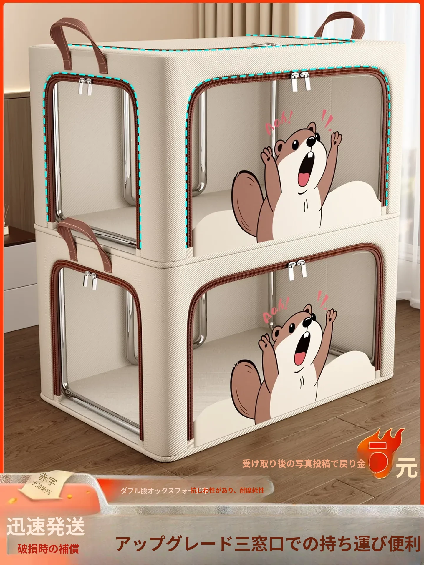 大容量オックスフォード布収納ボックス!ダウンジャケットや衣類をすっきり整理!クローゼットがスッキリ!便利な収納袋でお部屋も広々!