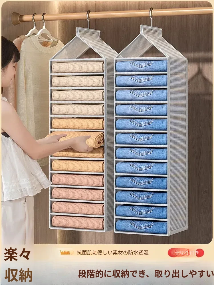 衣類整理の必需品!シャツ、Tシャツ、セーターをすっきり収納できる重ねる収納袋。クローゼットを美しく整理整頓し、毎日のコーディネートが簡単に!衣類の種類別に分けて、探しやすい!