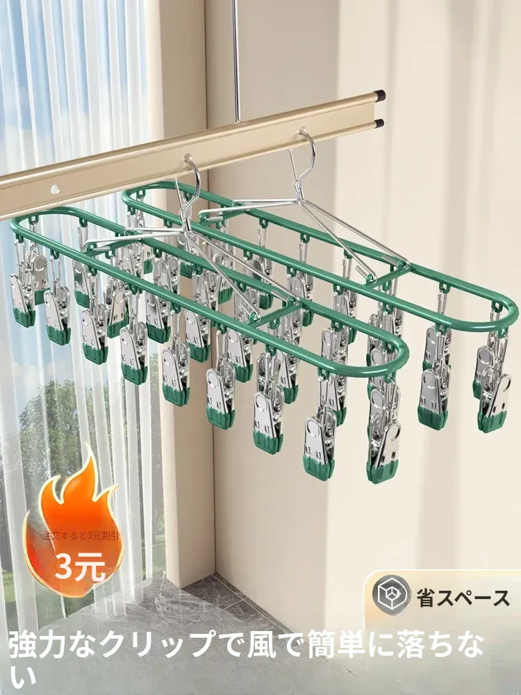 多機能バルコニー用ソックス干しハンガー - 下着や靴下をしっかり乾かせる!家庭用ステンレス製、クリップ付き収納便利グッズ!