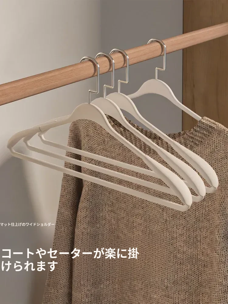 無痕フロッキーコートハンガー 滑り止め付き 高級感あふれる家用衣類収納 ふわふわダウンジャケットやコート専用 幅広肩設計で衣服をしっかり支える!