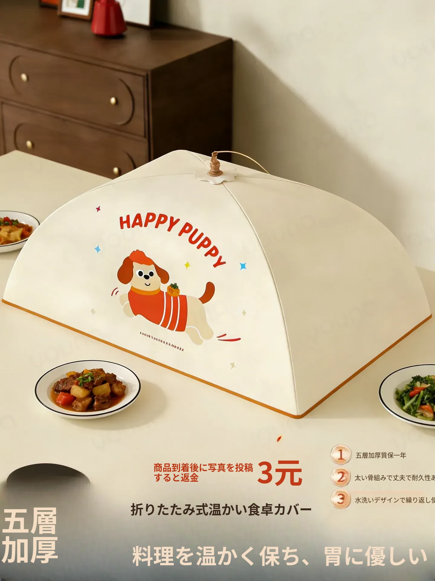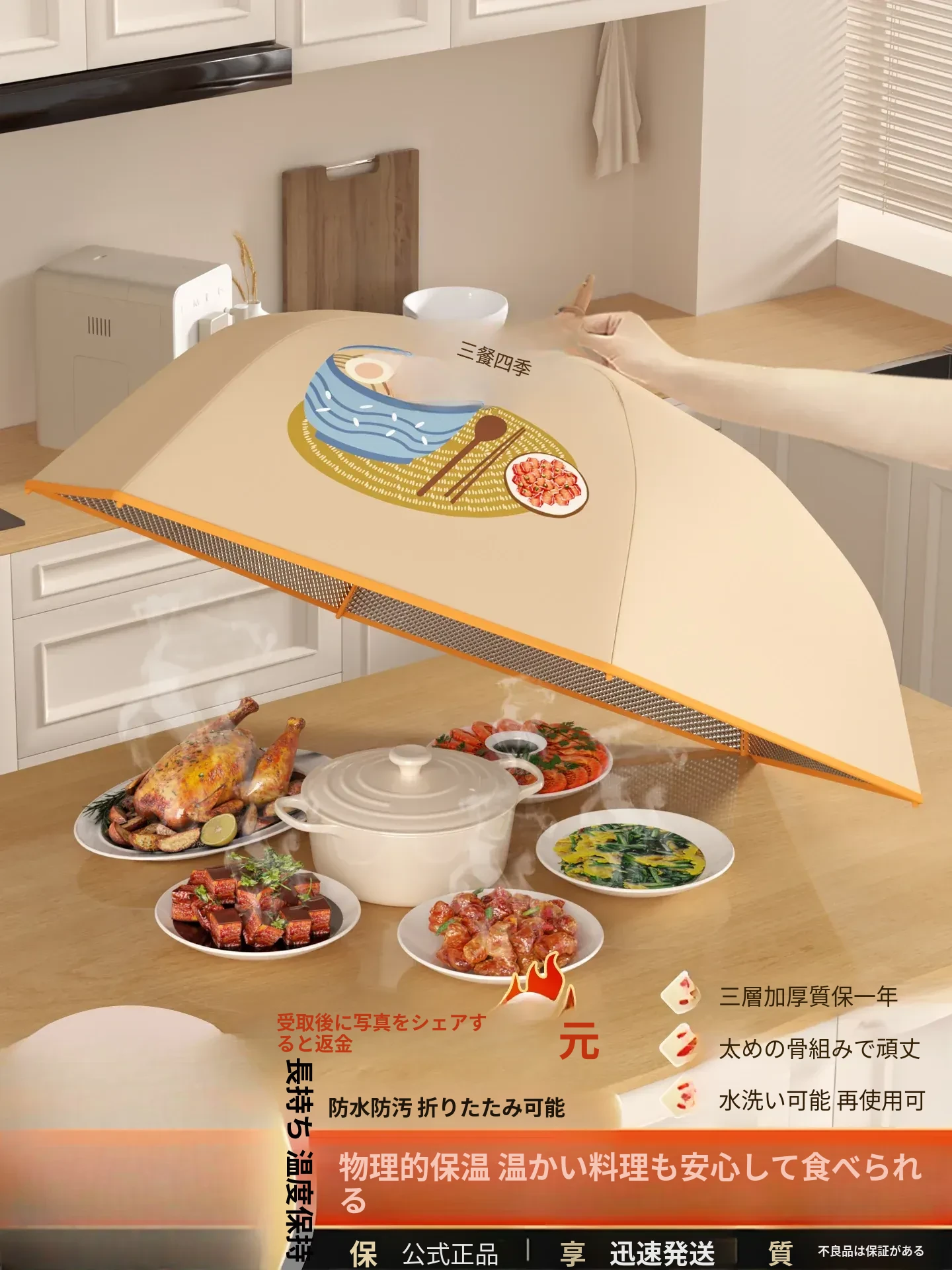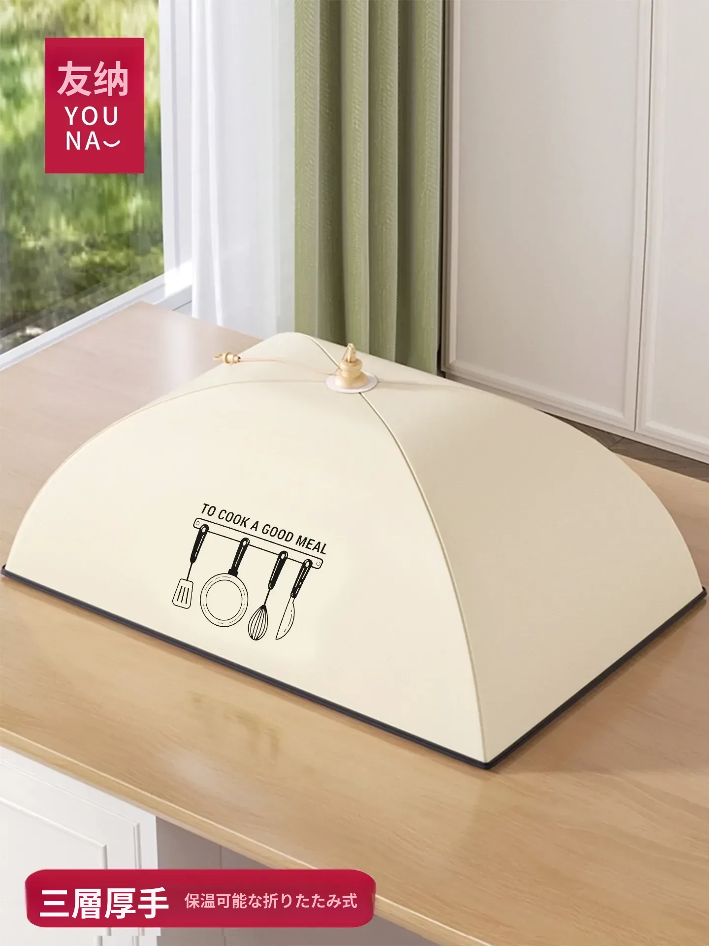 冬の食卓を華やかに!折りたたみ式の家庭用保温防塵カバー、大型厚手フードカバーで食材をしっかり守ります。冬の食事をもっと美味しく、清潔に!