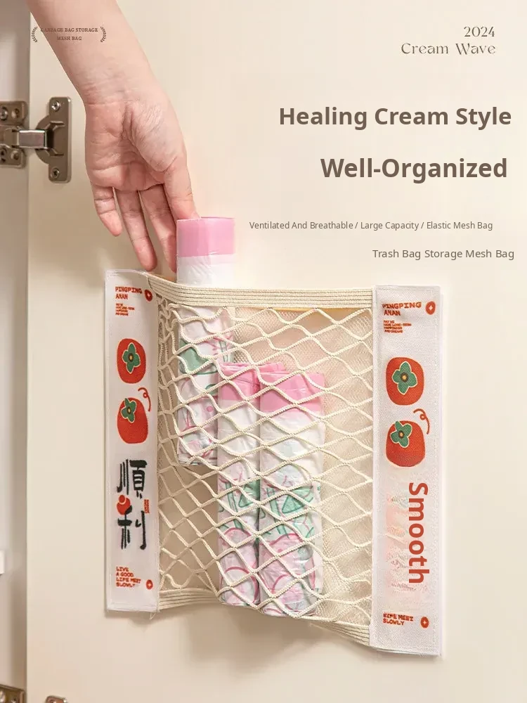 Wall-Mounted Large Capacity Kitchen Trash Bag Organizer - Magic Sticky Net Pouch for Convenient Plastic Bag Storage