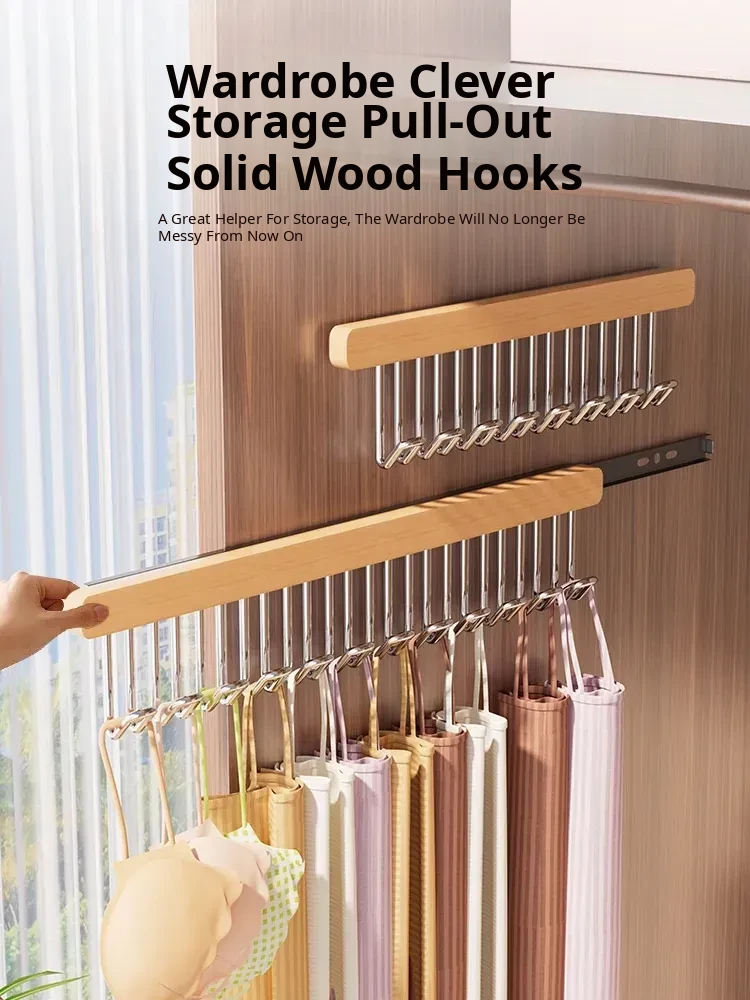2025 New Multi-Functional Wooden Hanger with Pull-Out Design - Versatile Clothes Rack for Home Use, Perfect for Hanging Lingerie and Tank Tops, Stylish Wave Shape