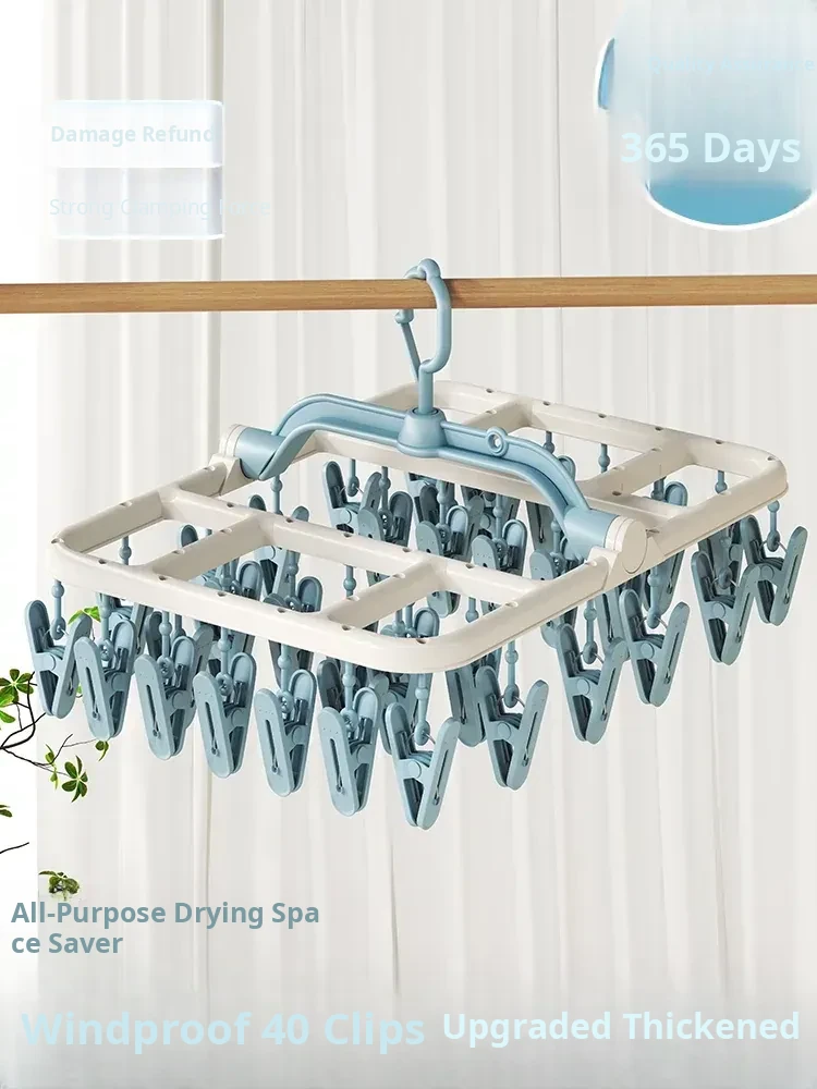 Multi-Functional Foldable Drying Rack with Clips - Perfect for Indoor and Outdoor Use, Ideal for Underwear, Socks, and More! Wind-Resistant Design for Your Balcony.