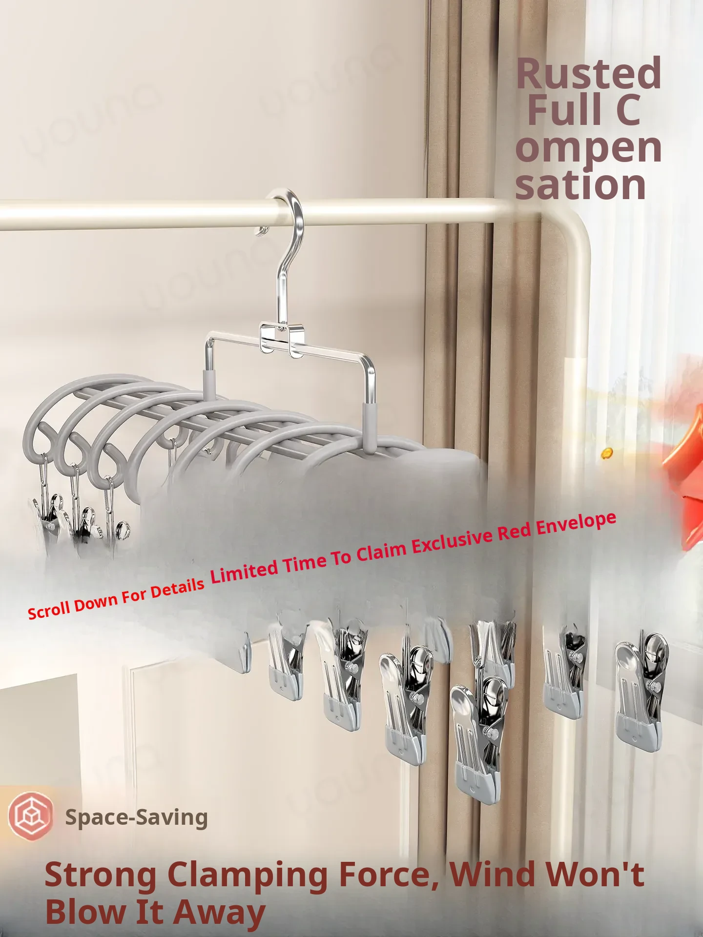 Stainless Steel Sock Drying Rack with Multiple Clips - Perfect for Home Use, Balcony, and Indoor Drying of Underwear and Baby Socks. Windproof Clothes Hanger, Essential Laundry Organizer!