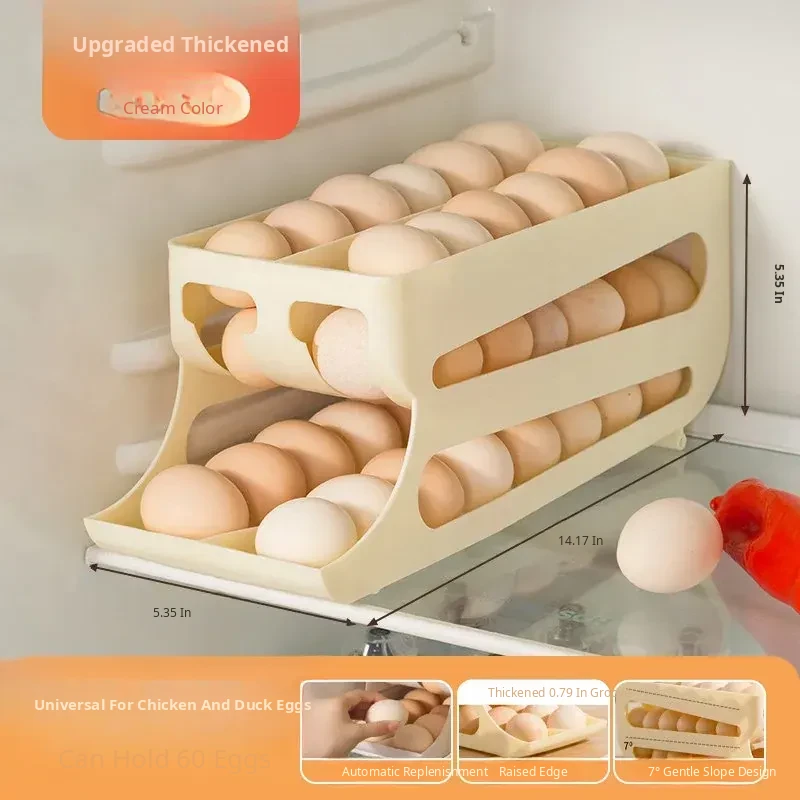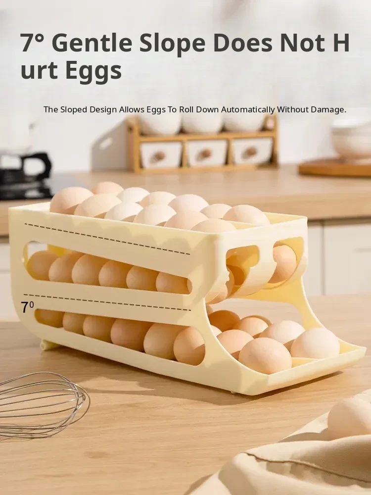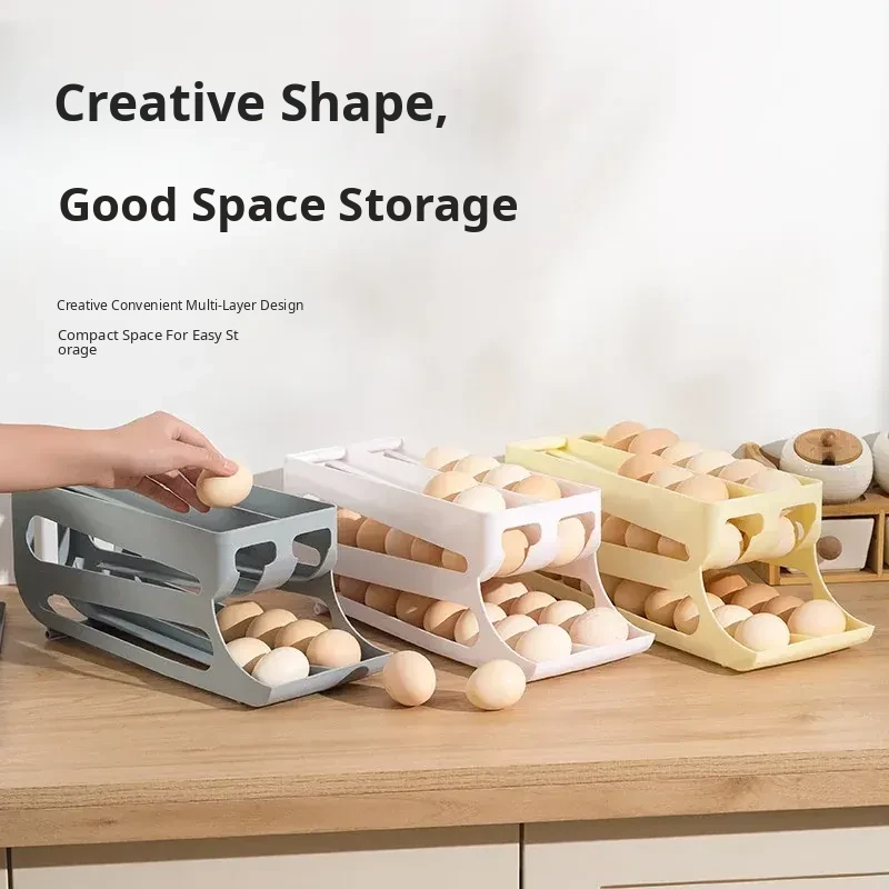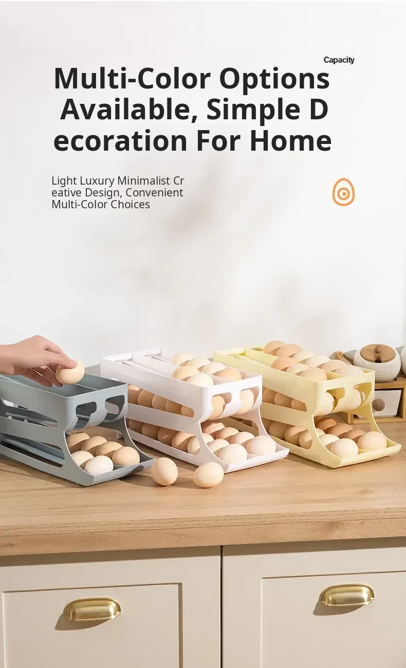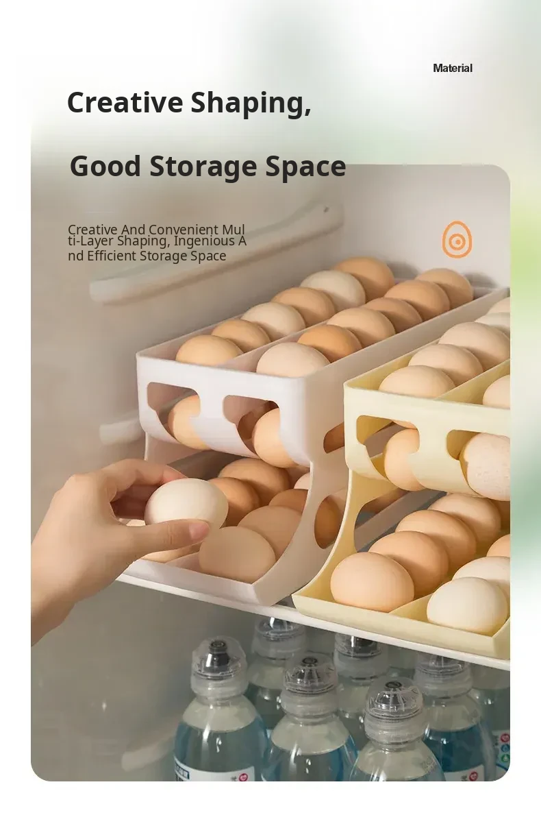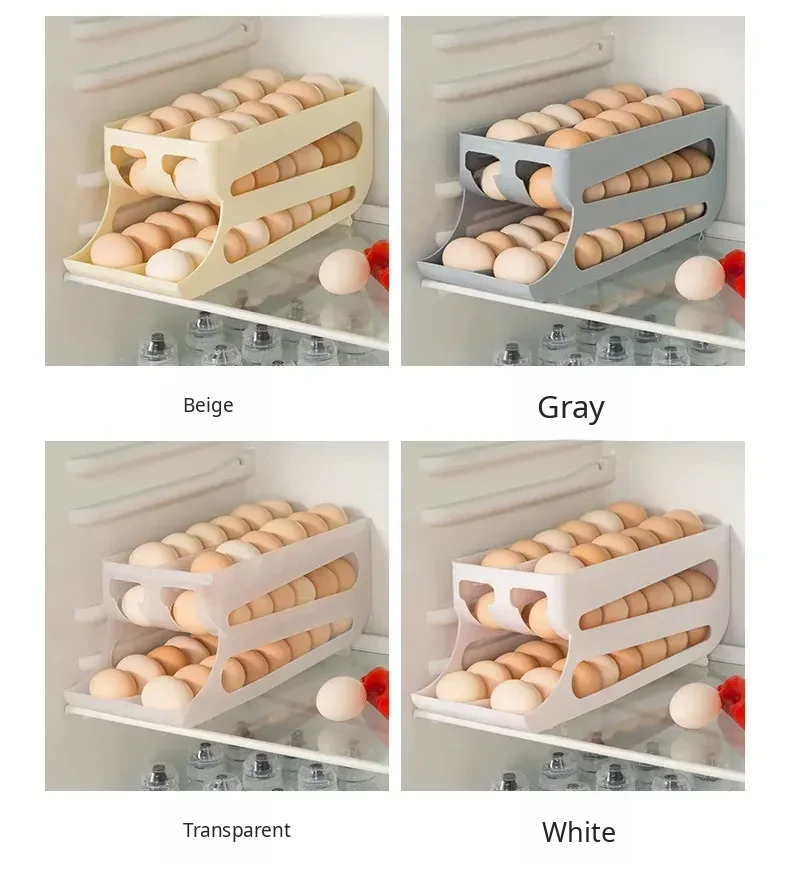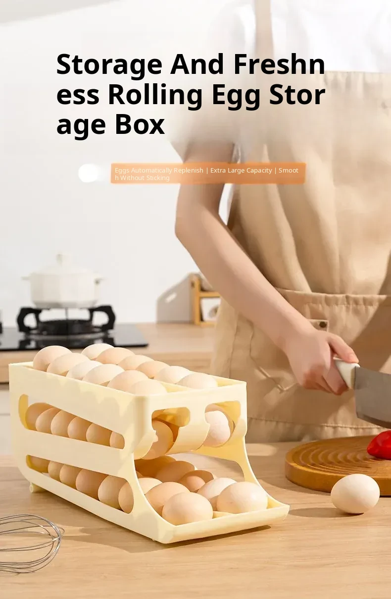Egg Storage Organizer - Rolling Refrigerator Egg Holder with Automatic Slide Design for Kitchen Freshness, Space-Saving and Convenient Egg Dispensing System