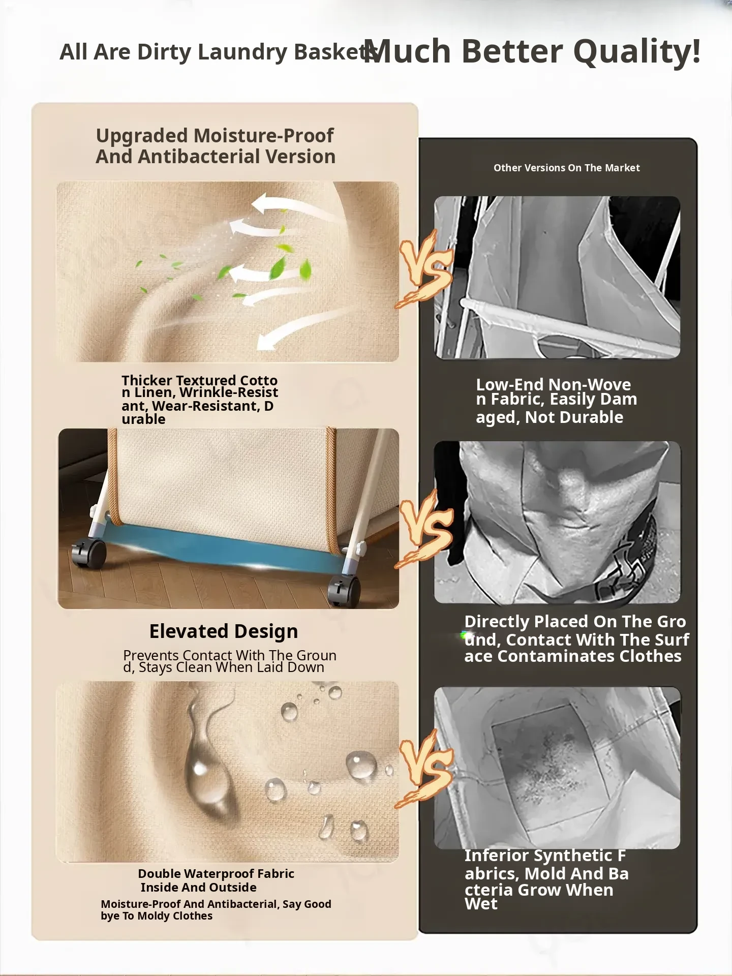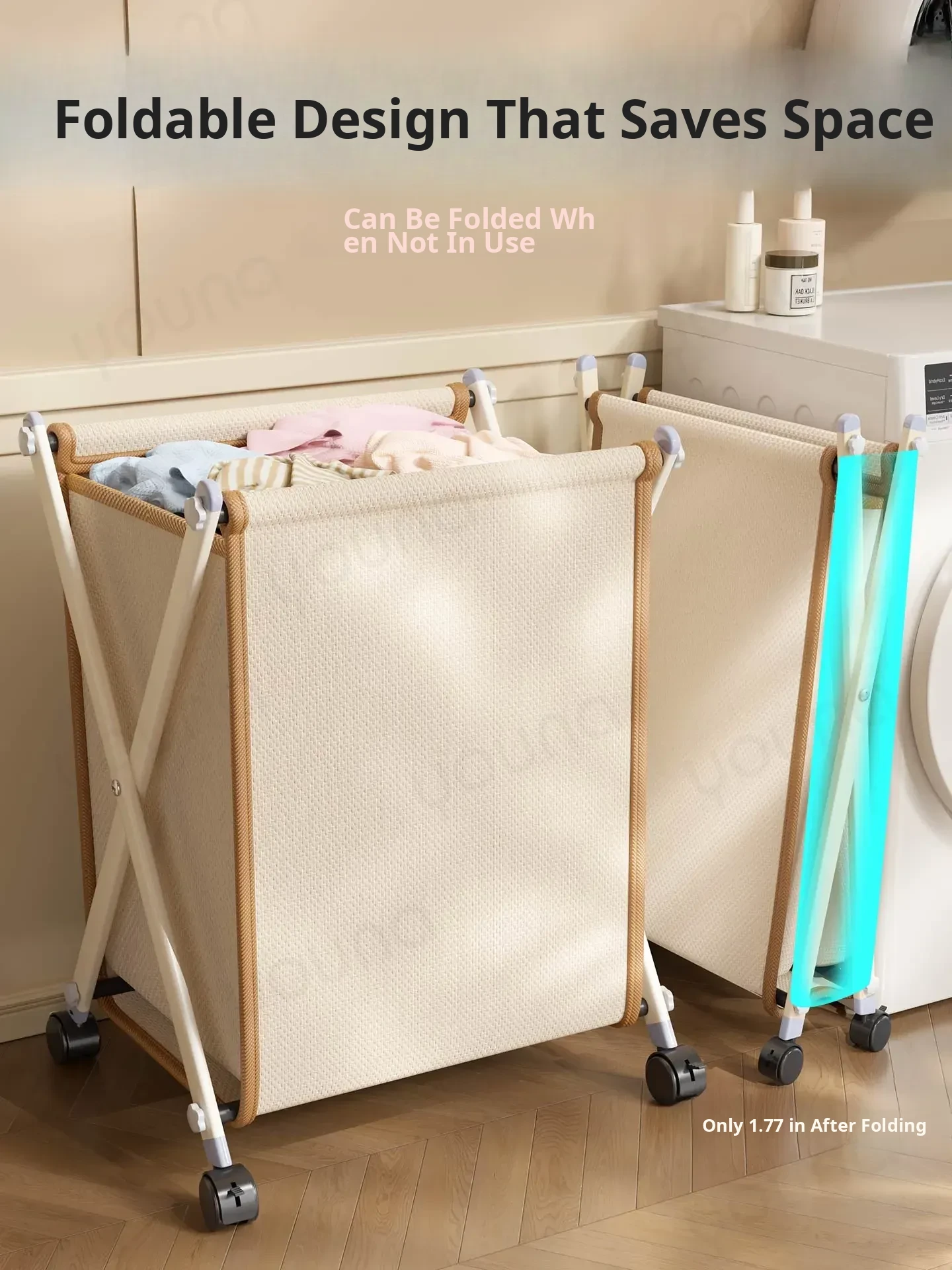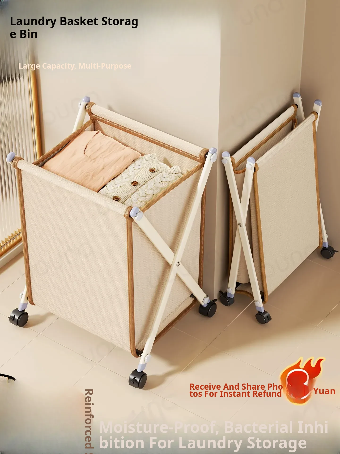 Foldable Laundry Basket with Wheels - Large Capacity Hamper for Home and Bathroom, Perfect for Storing Dirty Clothes and Keeping Your Space Organized