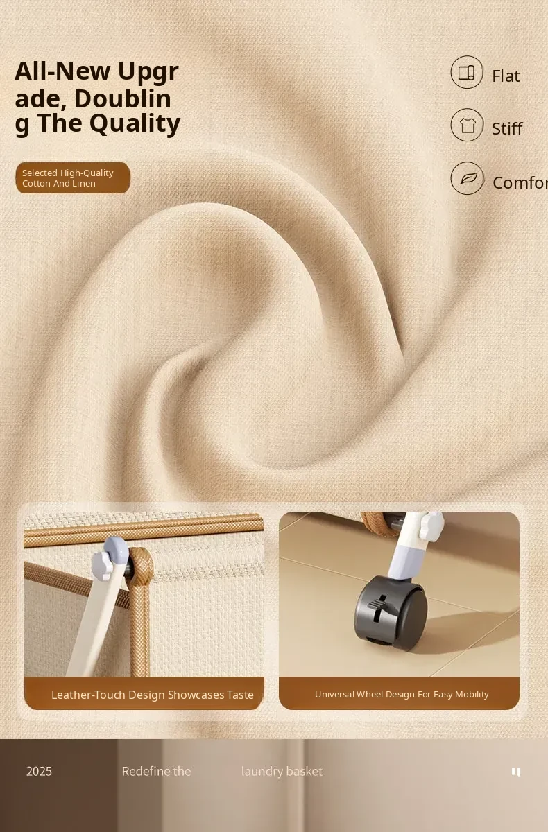 Light Luxury White-Leather Dirty Clothes Basket [Swivel Wheel⭐Matte Iron Finish⭐Minimalist Luxury Goods]