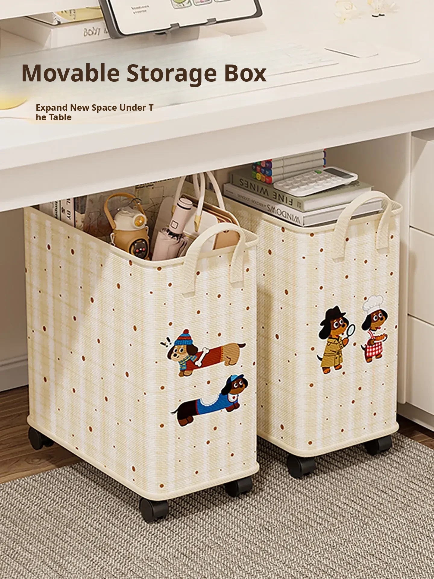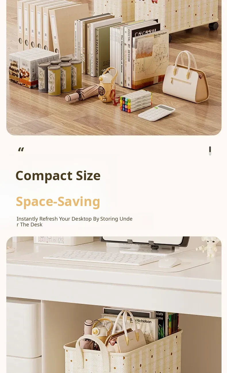 Foldable Rolling Storage Cart Under Desk - Office Organizer for Bags, Snacks, and Miscellaneous Items - Convenient and Space-Saving Solution for Your Workspace
