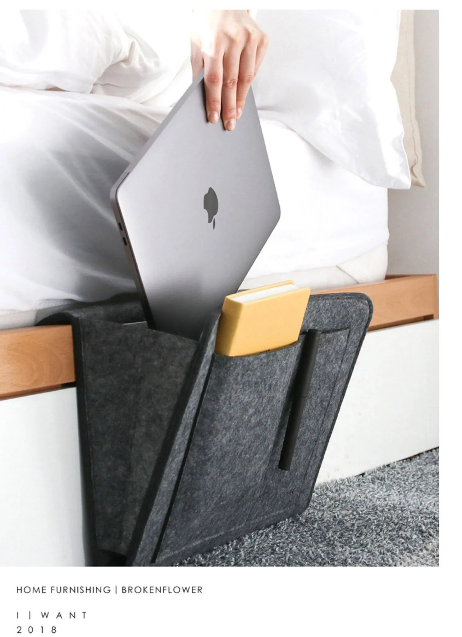 Nordic Felt Bedside Hanging Bag – Multi-Functional Storage Organizer for Remote Controls, Phones, and Tablets – Perfect for Bedrooms and Sofas!