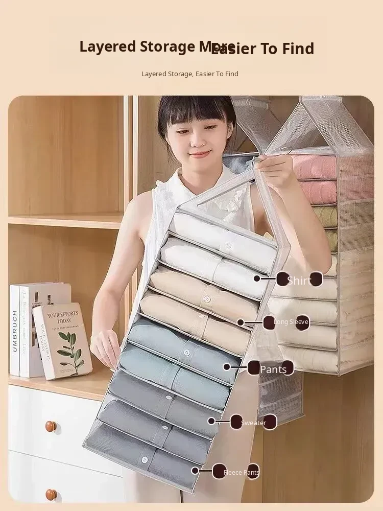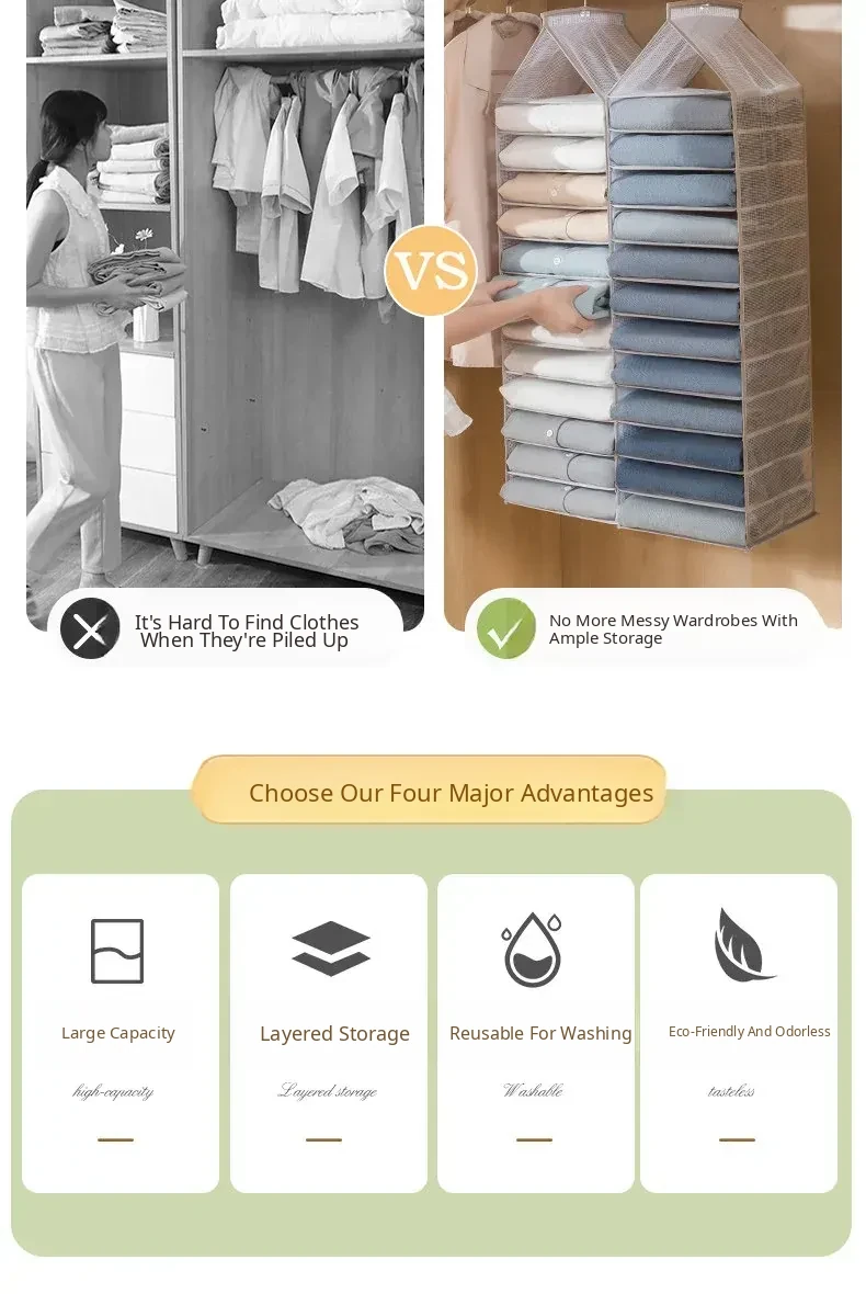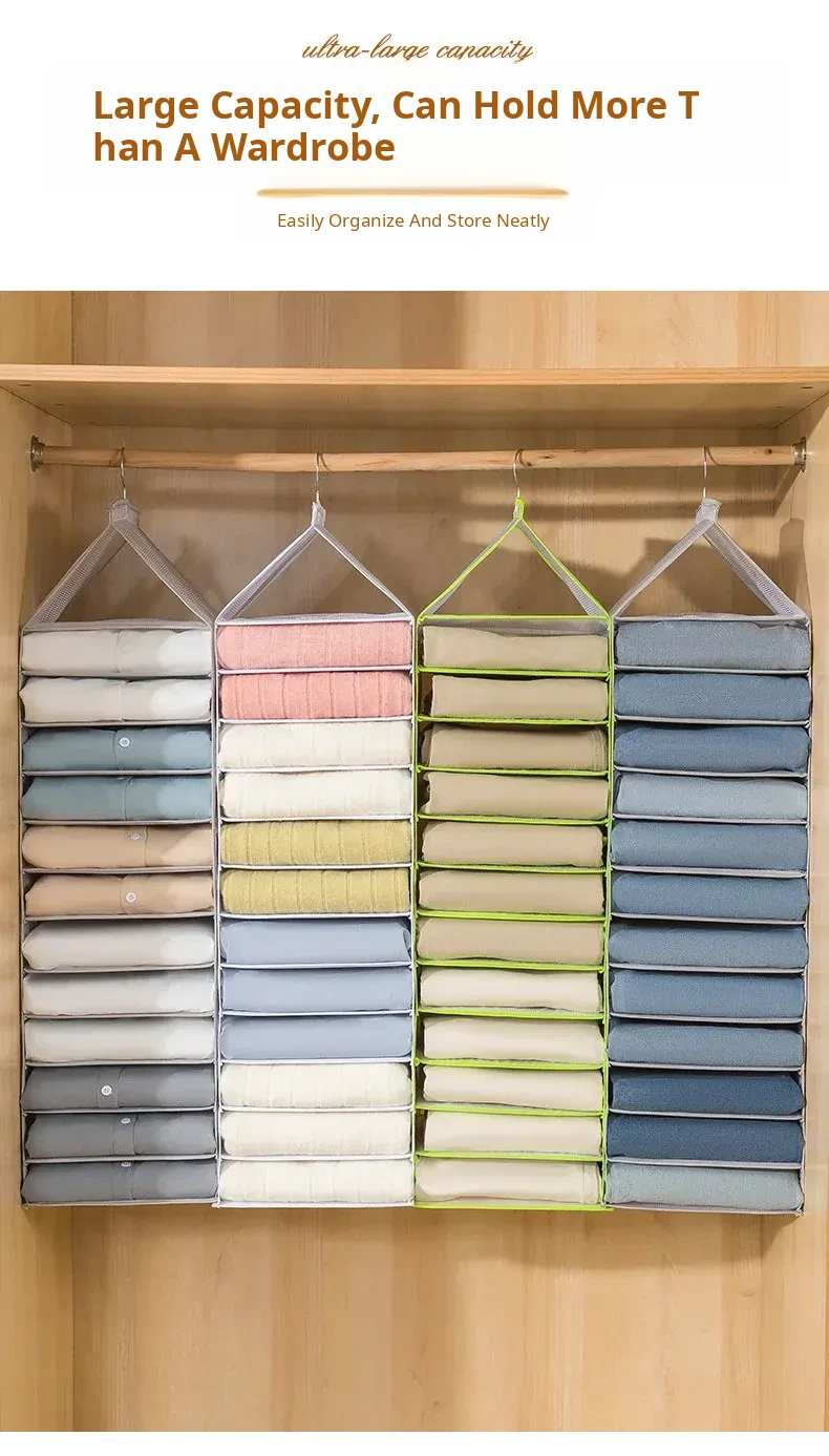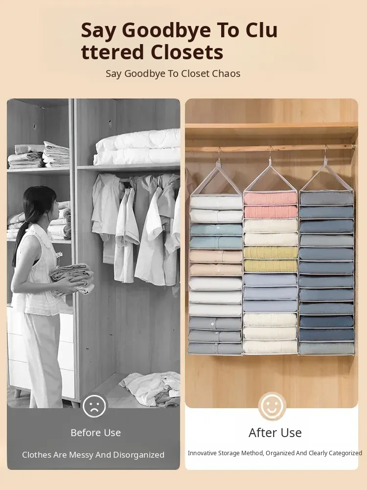 Revolutionary Clothes Folding Organizer - Space-Saving Hanging Storage Bag for Shirts, T-Shirts, and Sweaters. Keep Your Closet Neat and Tidy with Layered Organization and Easy Folding Board. Perfect for Home Use!