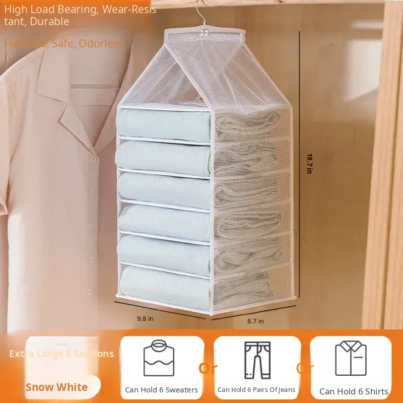 Upgraded and Thickened Huge 6 Compartments - White [Can Hold Sweaters/Jeans/Thin Jackets, Etc.]