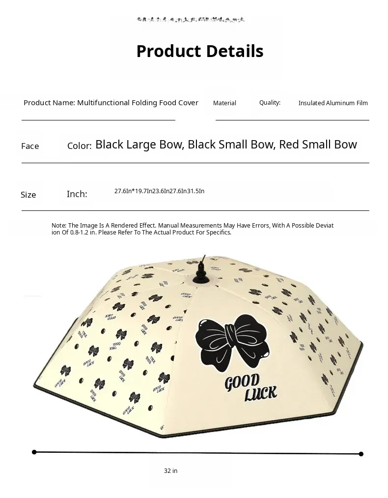 Winter Foldable Food Cover - Large Thick Insulated Dustproof Kitchen Table Shield for Home Meals