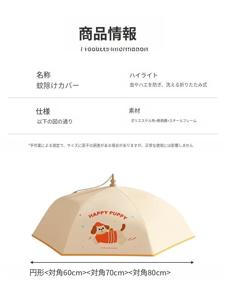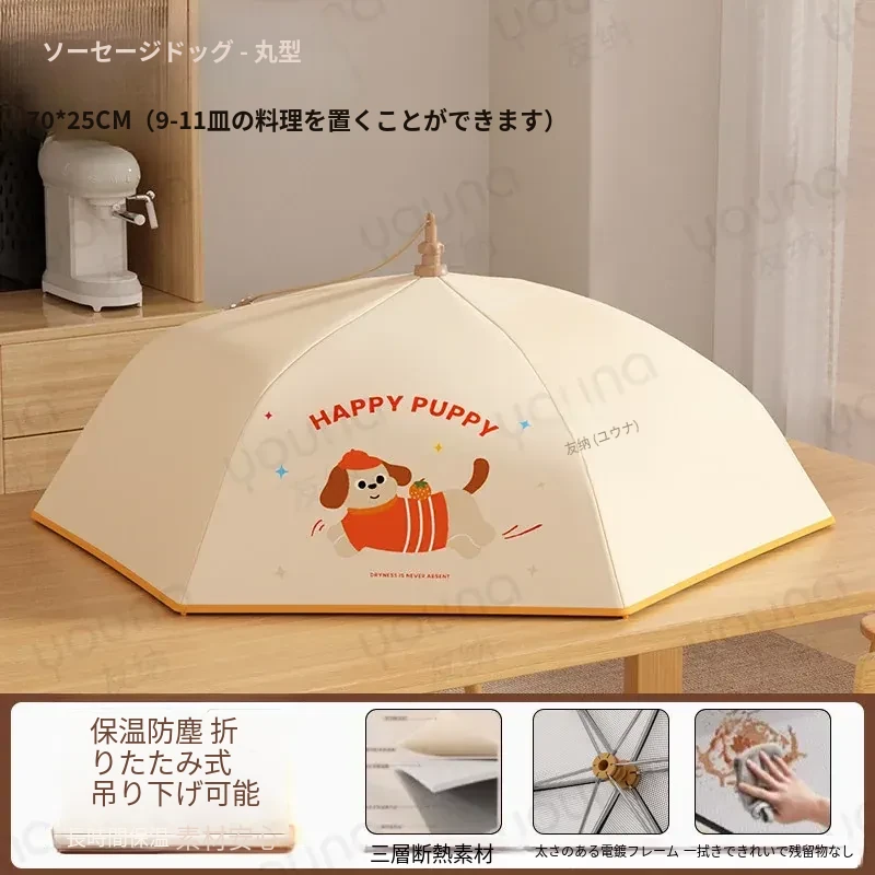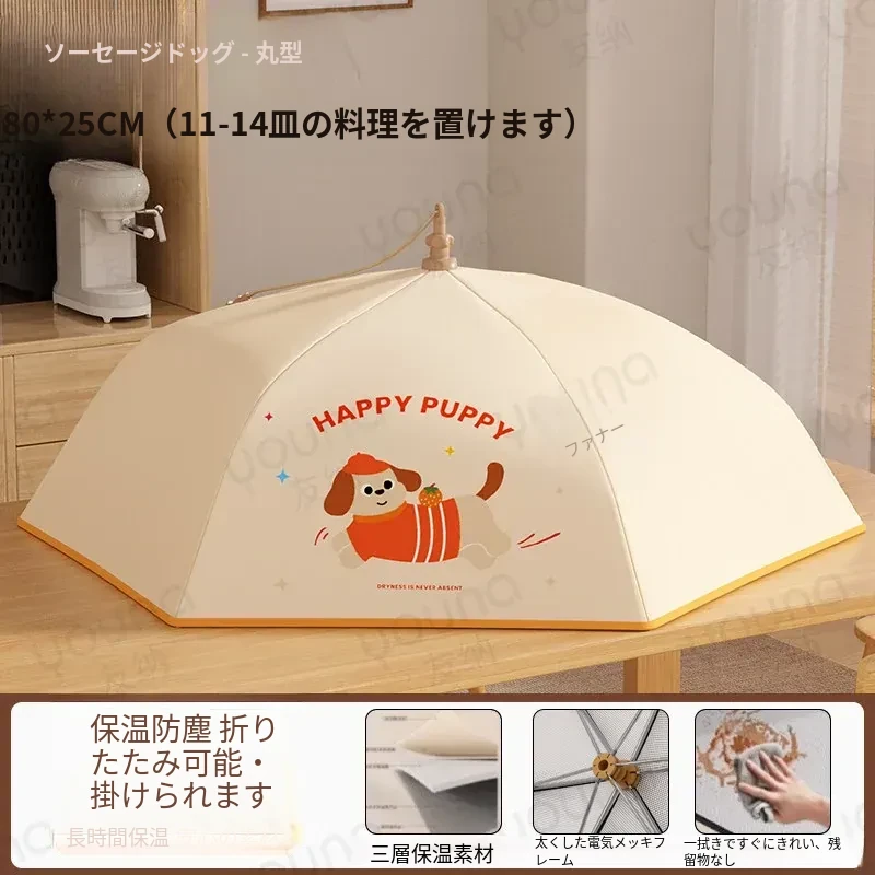 萌犬趣食⭐80cm円形タイプ⭐(厚手保温/約放10-12皿の料理)
