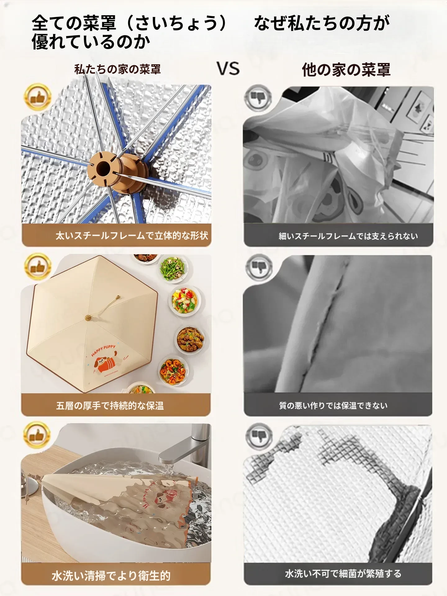 2026年新作!折りたたみ保温菜カバー - 冬の食卓を守る、余った料理をほこりから守る便利アイテム!