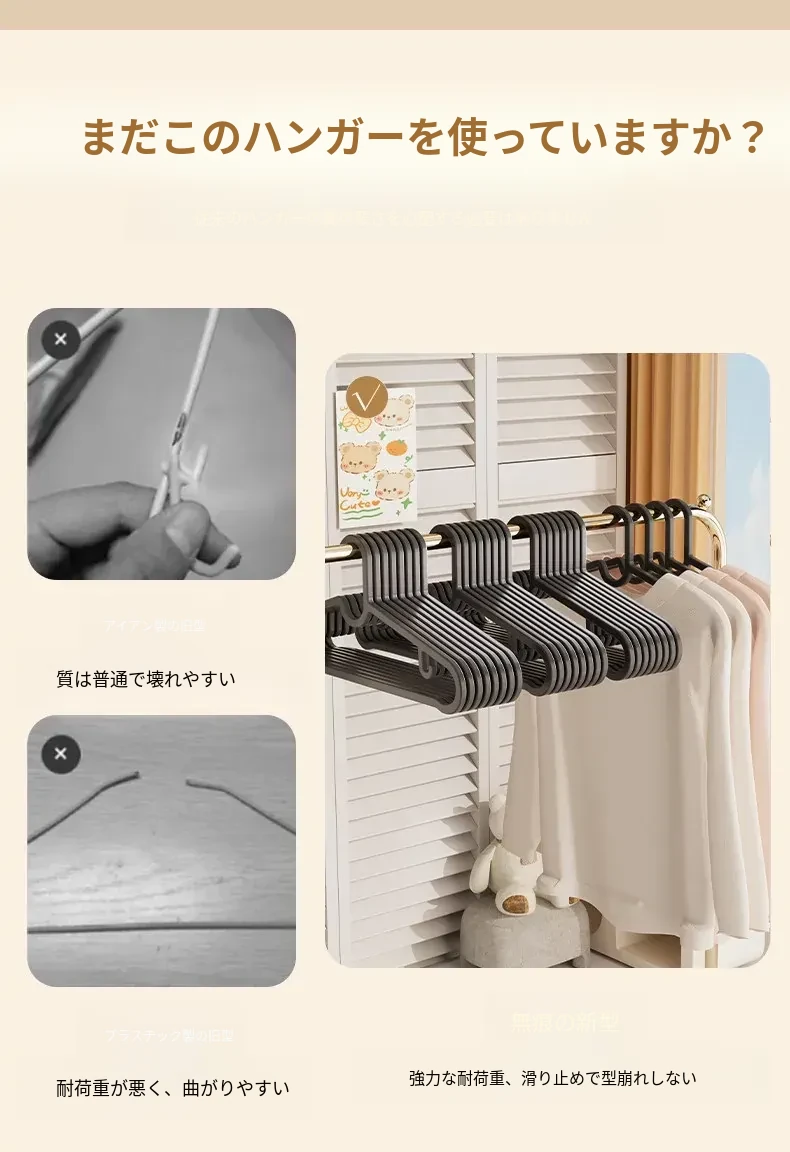 エスティンハンガー 家庭用100個セット 学生寮向け 肩の跡がつかない無痕室内物干しハンガー しっかりとしたデザインで衣類をしっかりサポート!快適な収納を実現します!