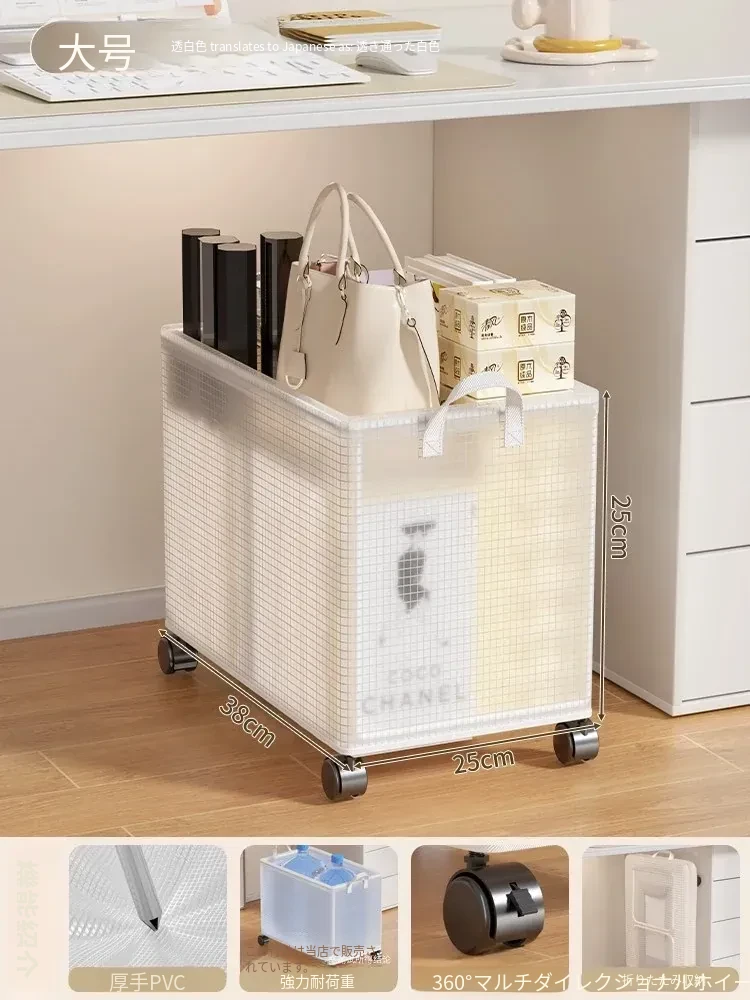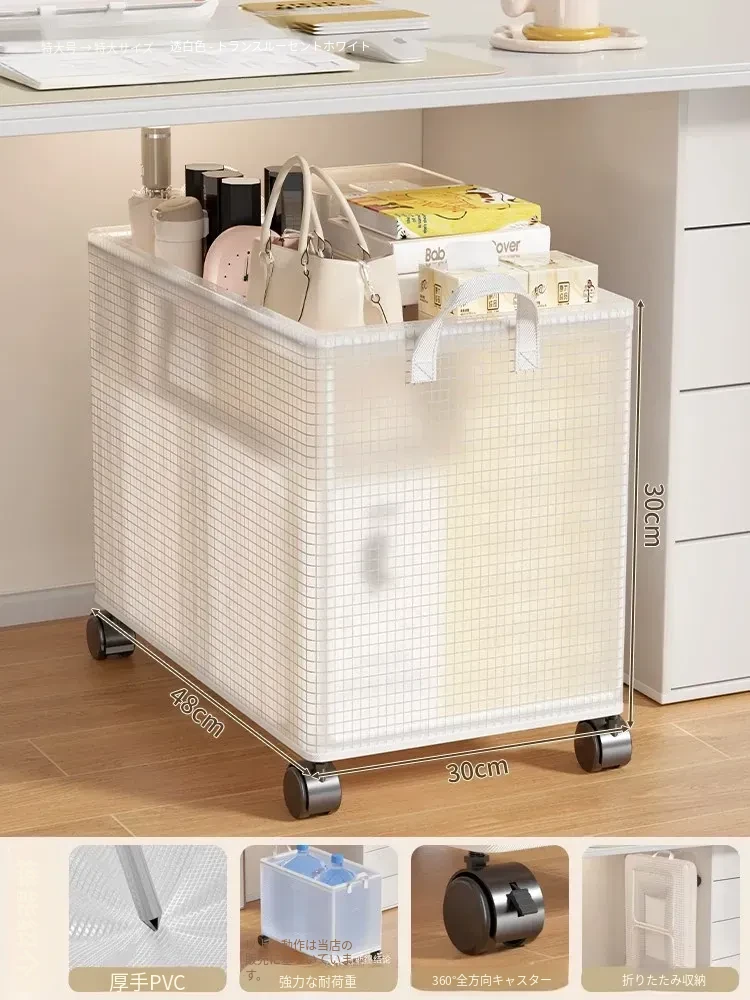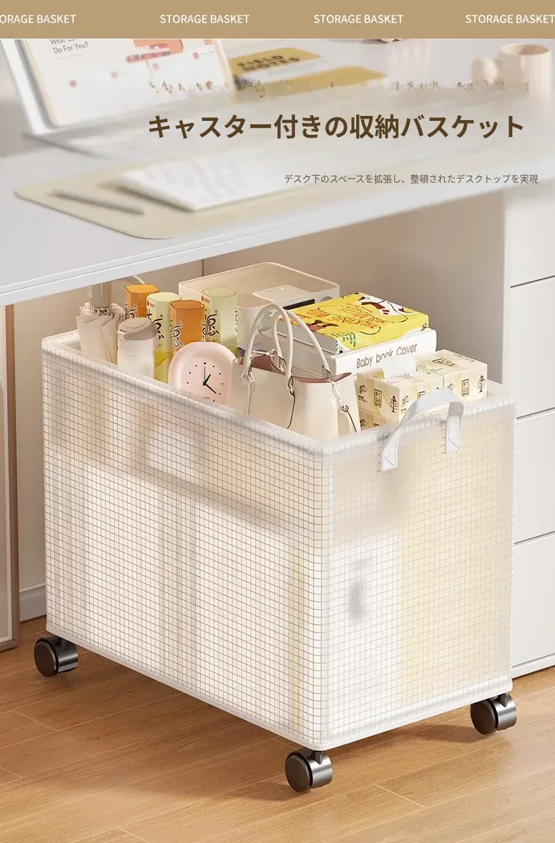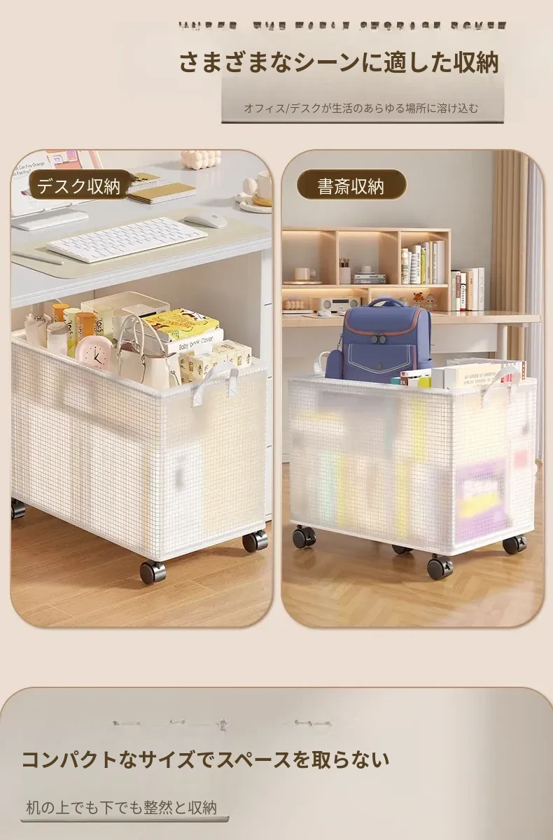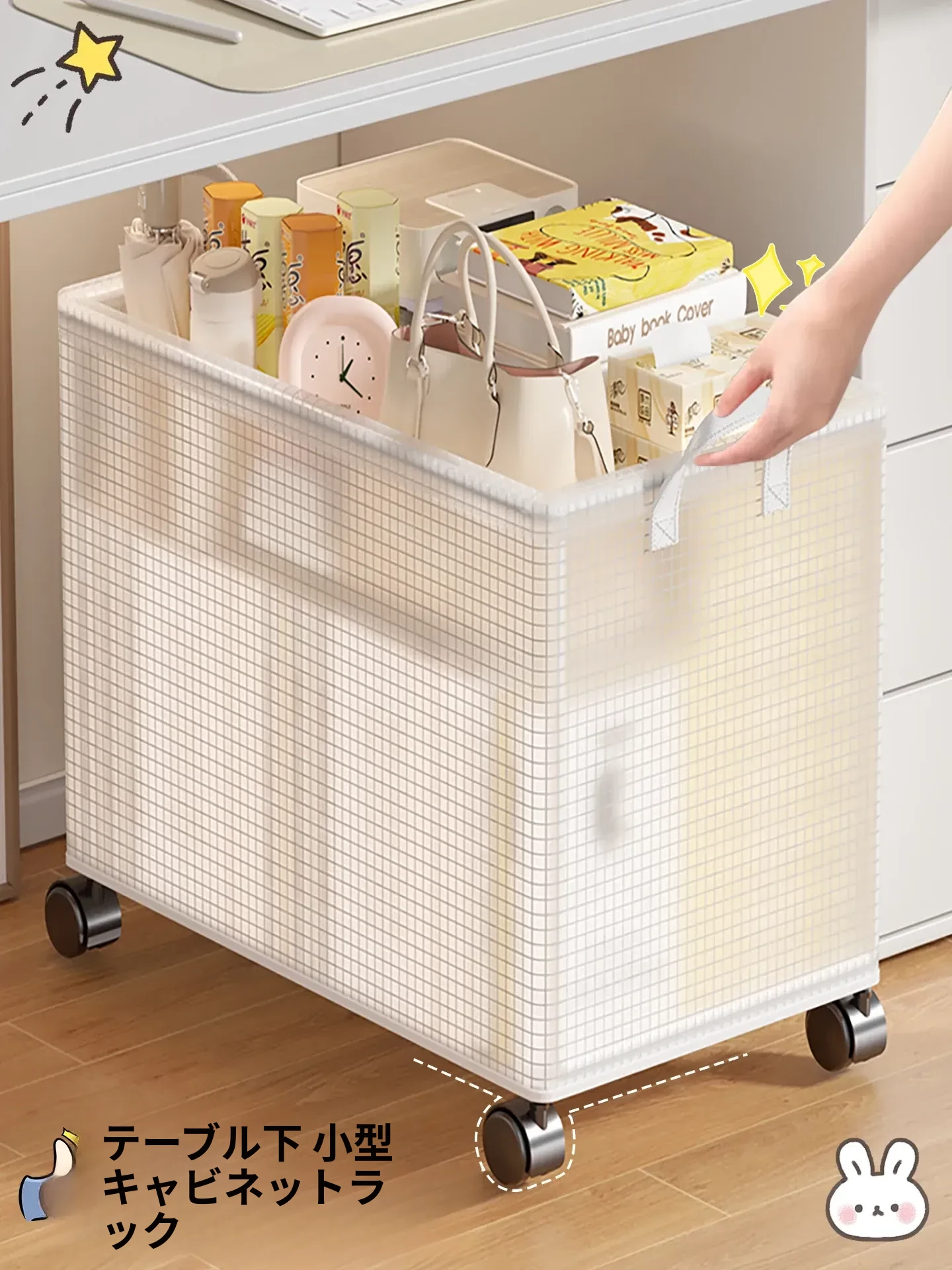 オフィスデスク下収納ラック キャスター付きミニカート リュック収納ラック 折りたたみ可能な書籍・スナック収納バスケットで、スペースを有効活用!整理整頓が簡単にできる便利アイテム!