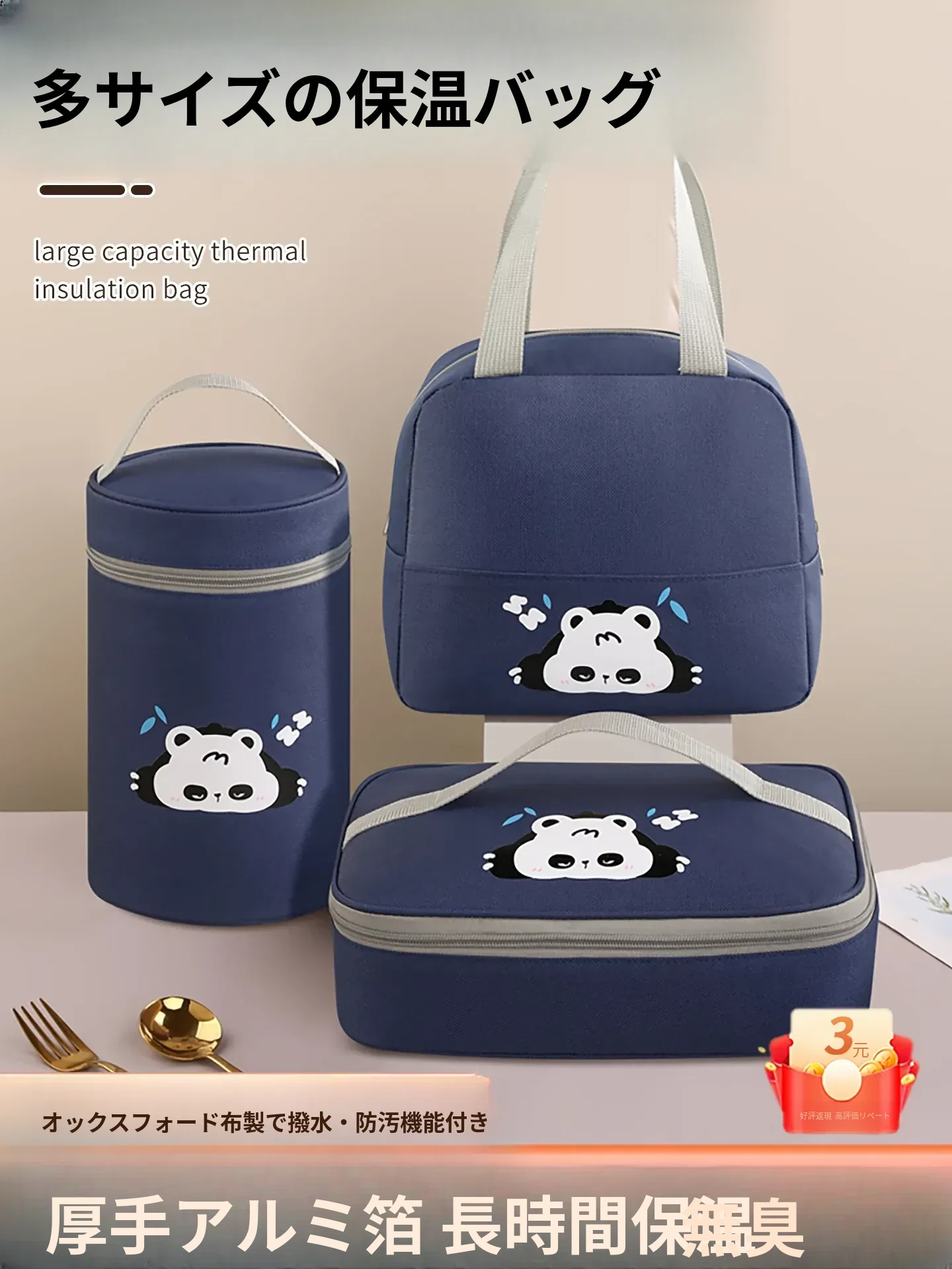 四角型✨ダークネイビー【四層厚手防油汚れ丨無臭で洗える丨保温保冷】