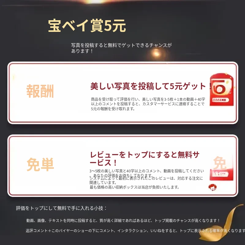 受け取り後に写真を投稿で5元のボーナス!
