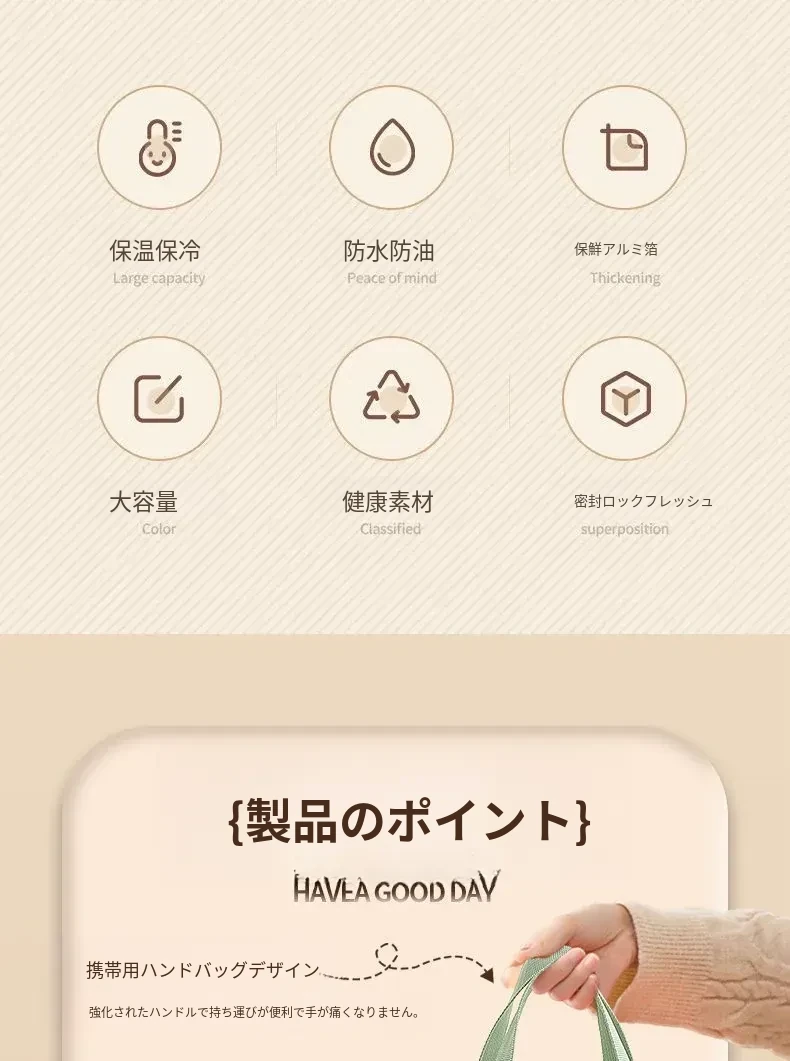 大容量保温ランチバッグ - お弁当持ち運びに最適!厚手アルミ箔使用、通勤に便利な手提げトートバッグ。温かいお弁当をいつでも楽しめる!