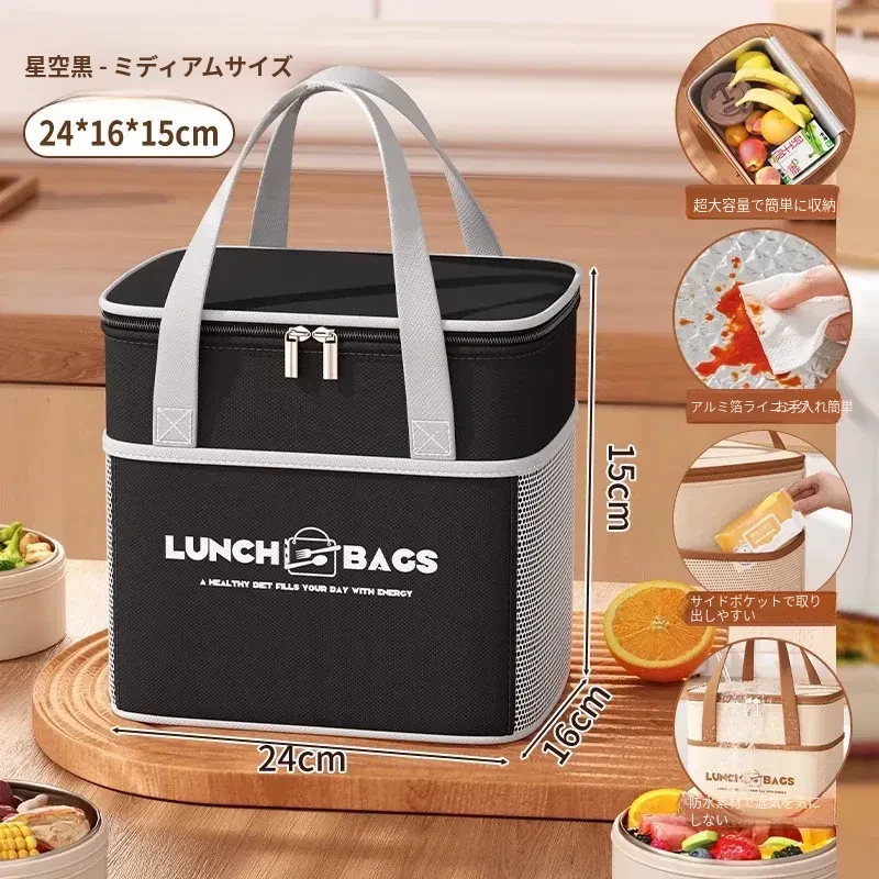 中号-優雅な黒【四層加厚アルミ箔/長持ち保温/超大容量/防水防汚】