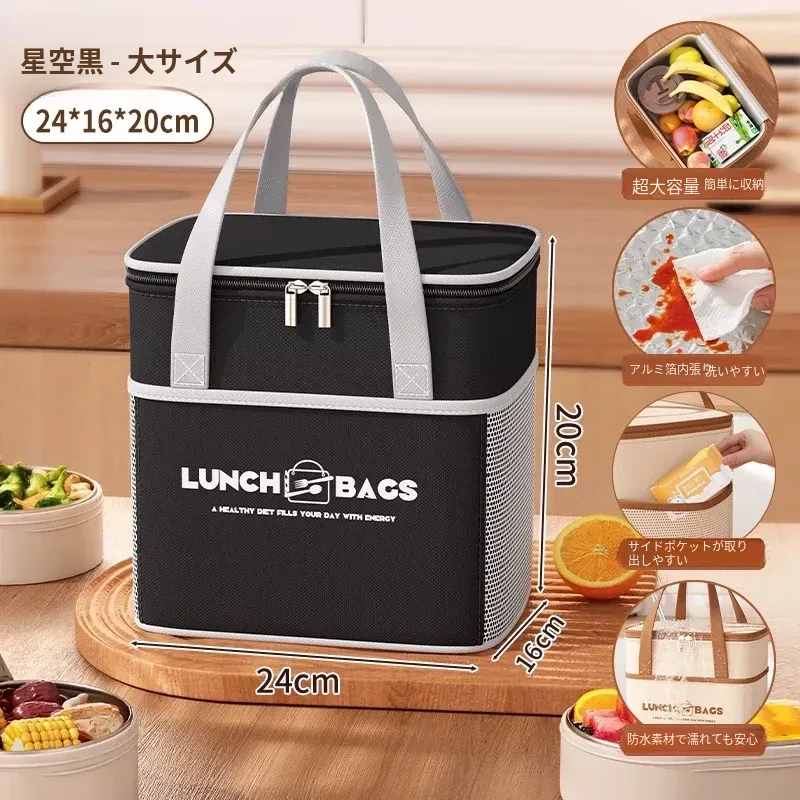 大号-優雅な黒【四層加厚アルミ箔/長持ち保温/超大容量/防水防汚】