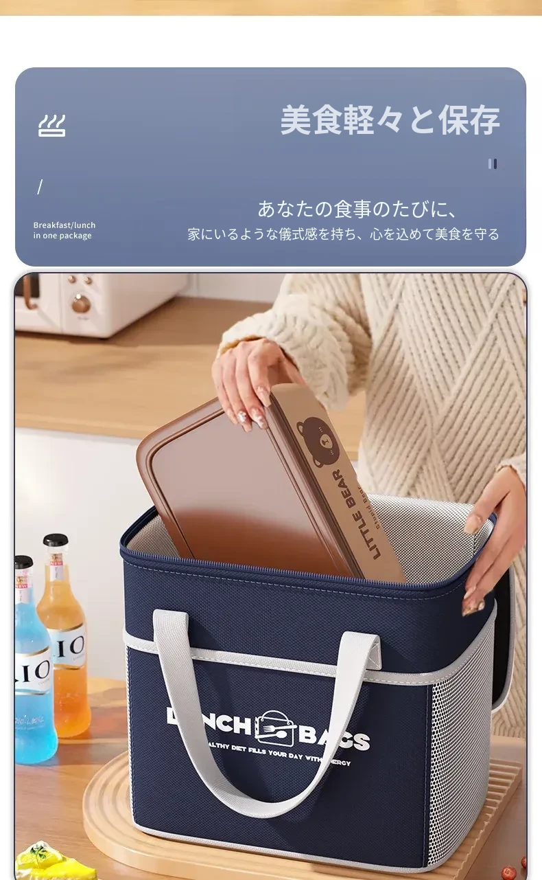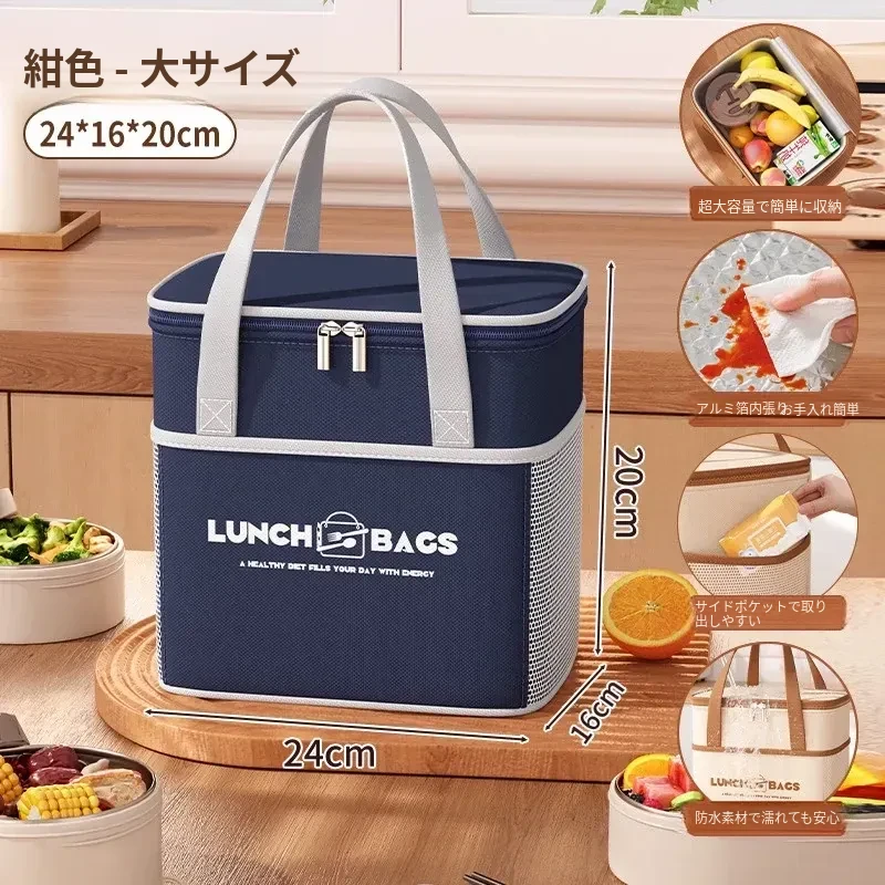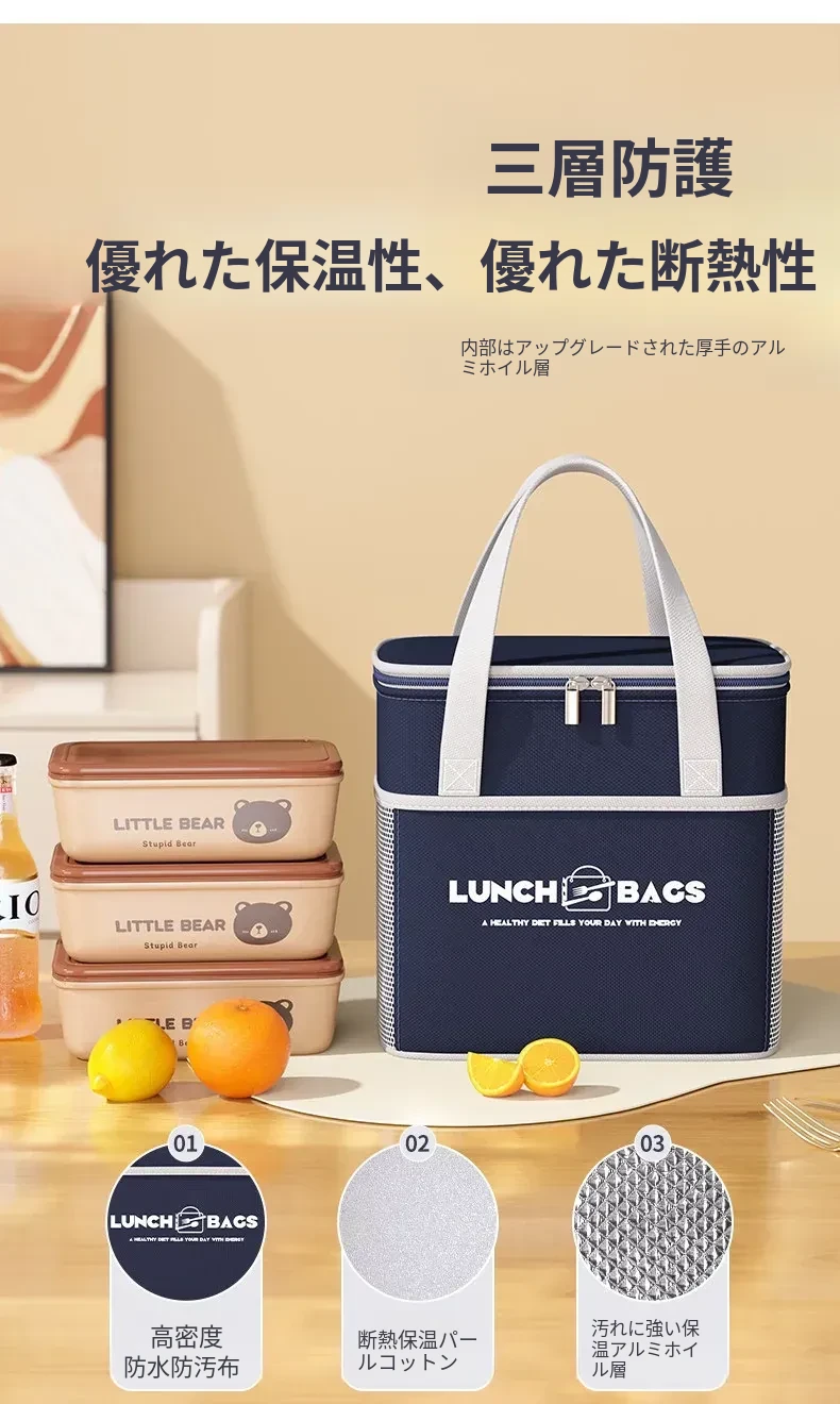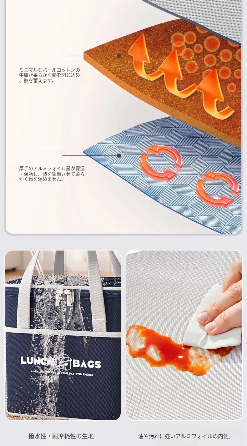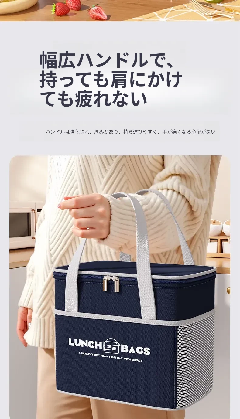 保温効果抜群!冬季用厚手ランチバッグ - 通勤や学校に最適な、お弁当をしっかり守る便利な手提げバッグ!