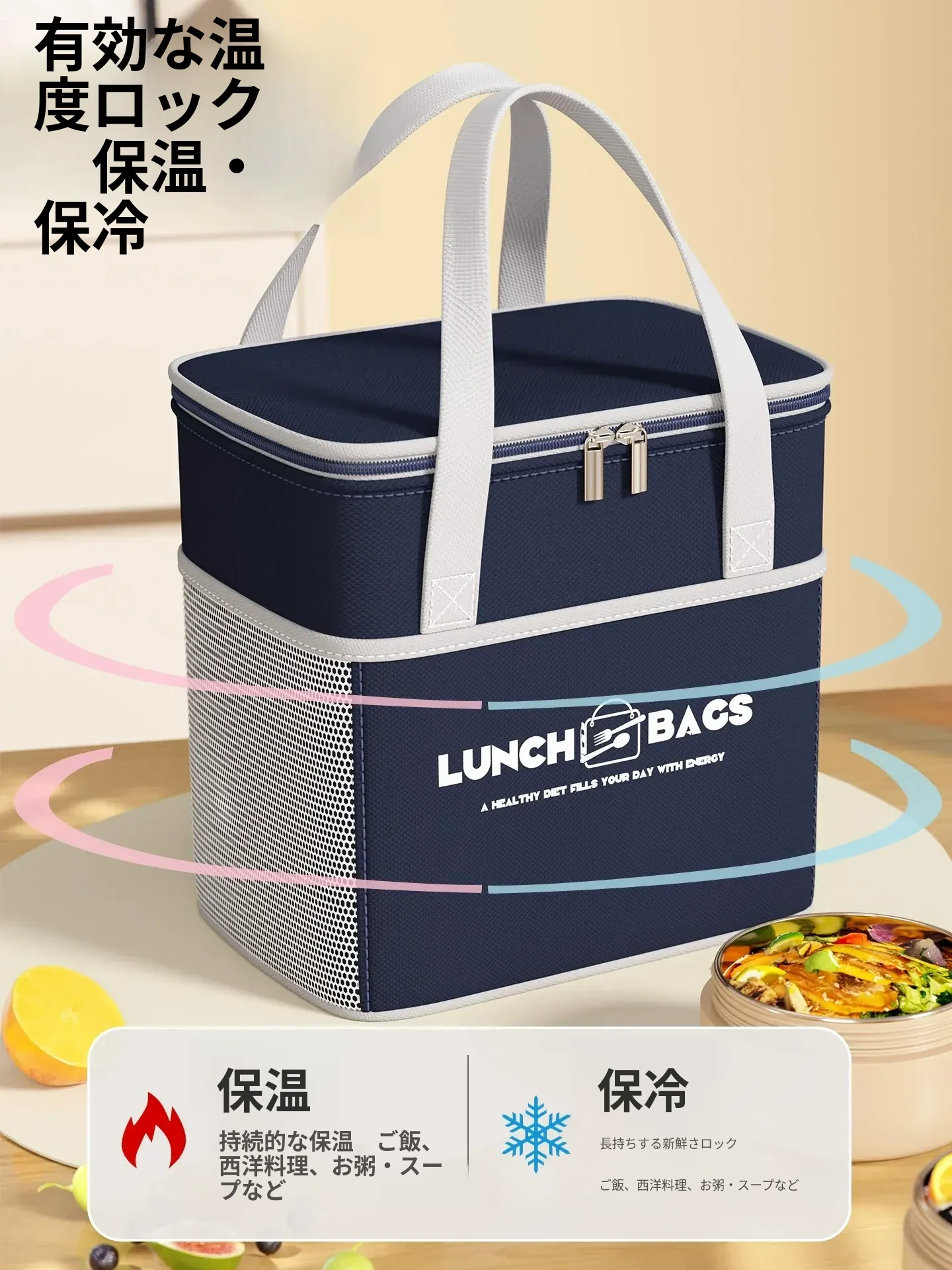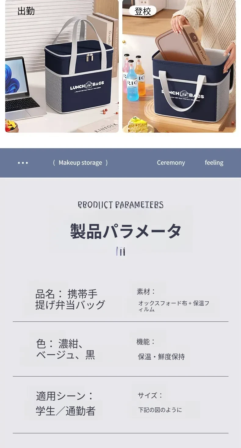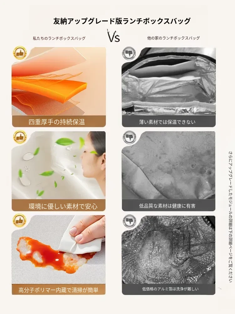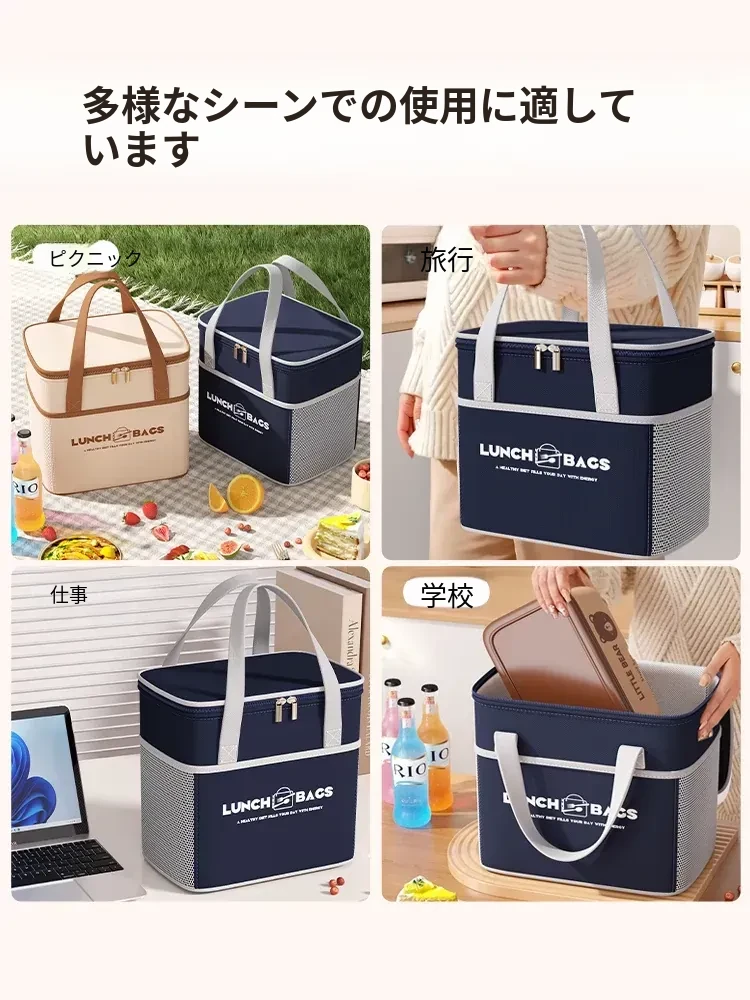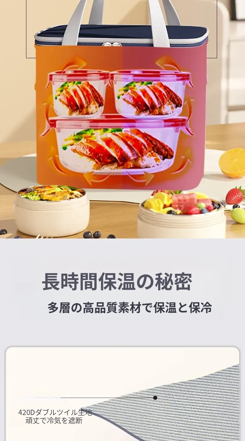 保温効果抜群!冬季用厚手ランチバッグ - 通勤や学校に最適な、お弁当をしっかり守る便利な手提げバッグ!