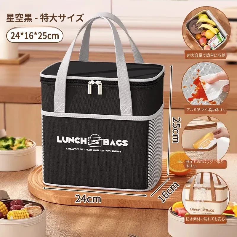特大号·⭐·優雅な黒【四層加厚アルミ箔/長持ち保温/超大容量/防水防汚】
