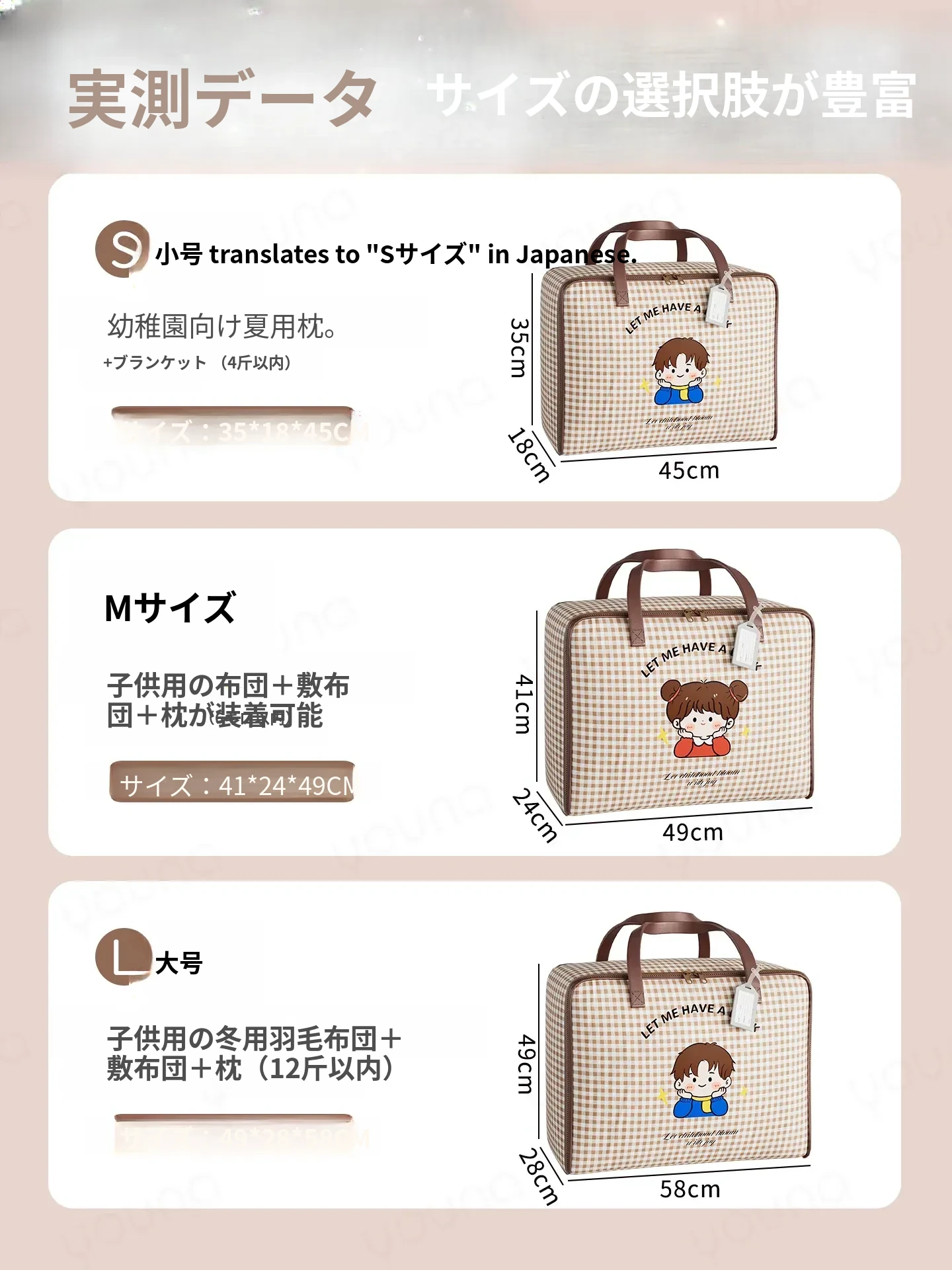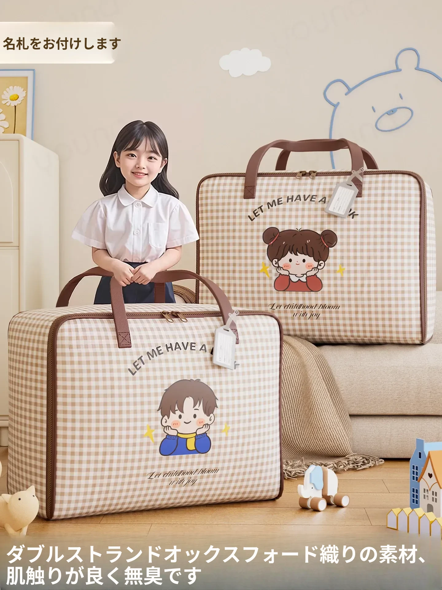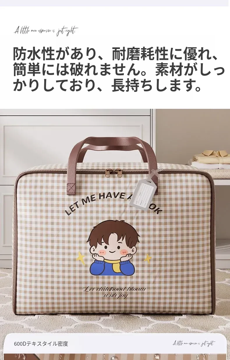 幼稚園用大容量収納バッグ|衣類や布団をスッキリ整理!子どもたちの入園準備に最適な行李バッグで、快適な毎日をサポートします。