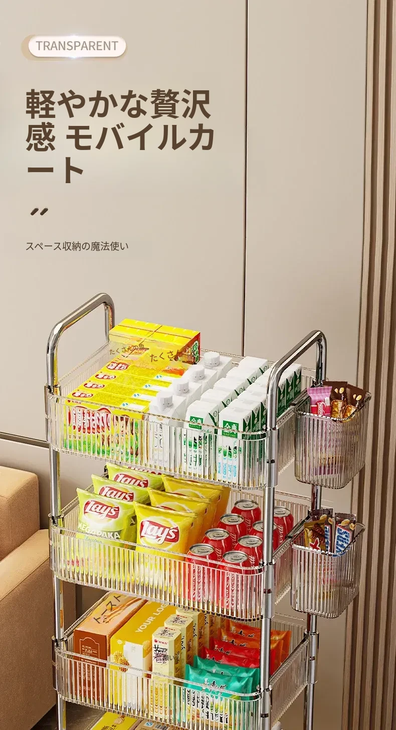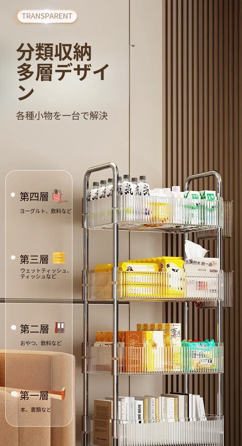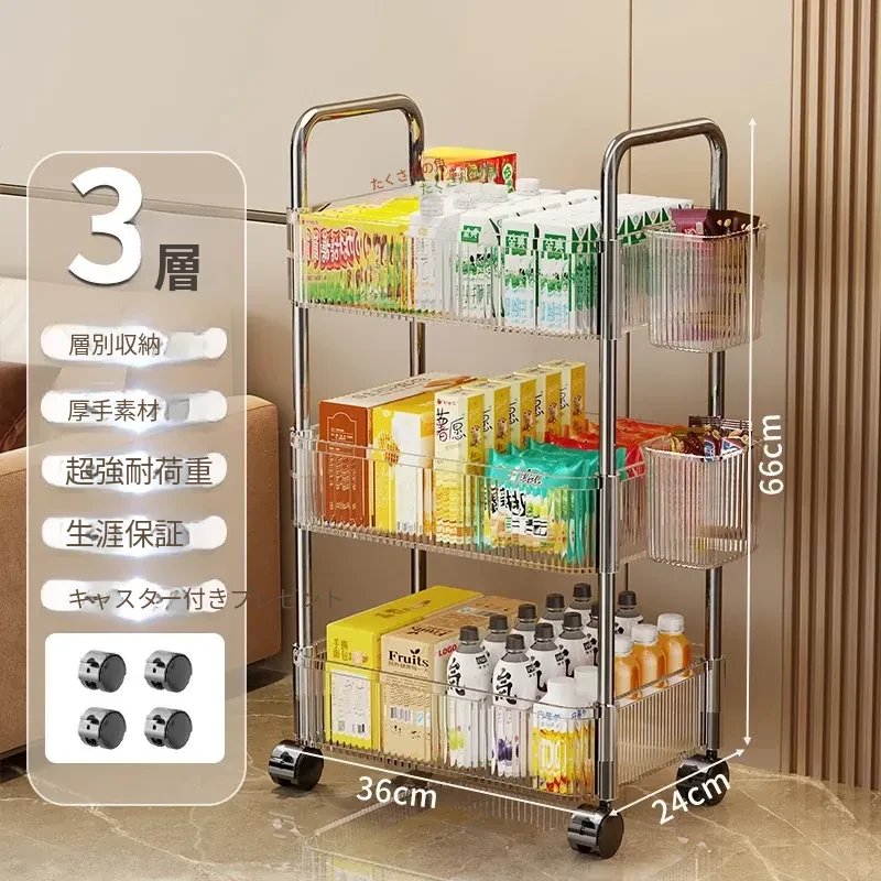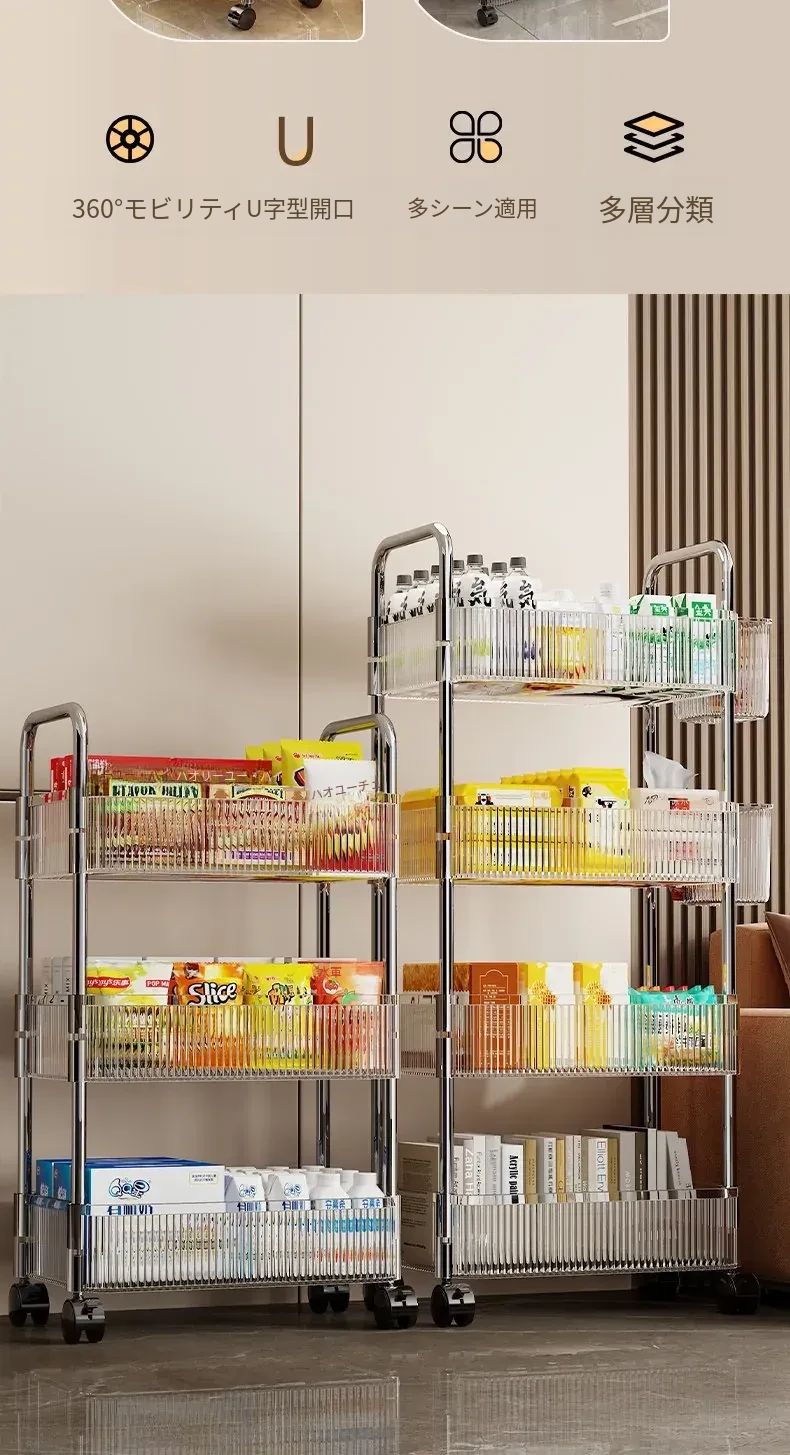 多機能キャスター付き収納ラック|リビング・キッチン・バスルームに最適!お菓子やおもちゃをすっきり整理!省スペースで便利なマルチストレージソリューション!