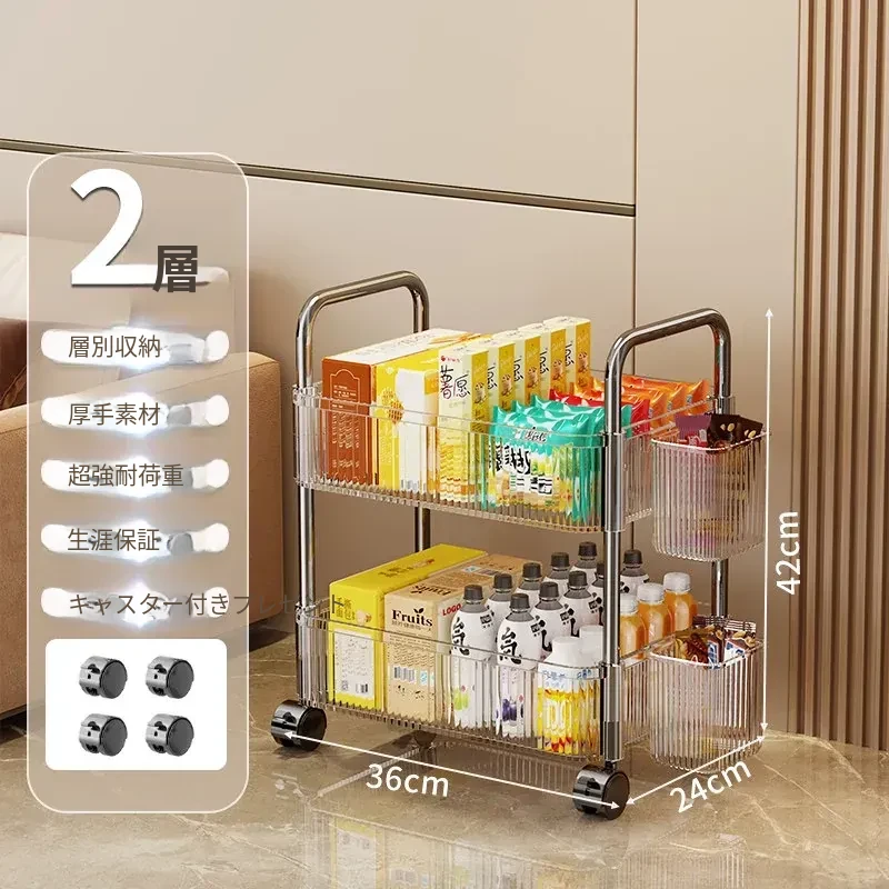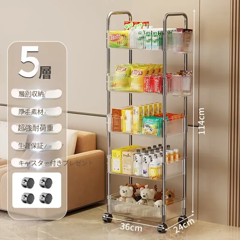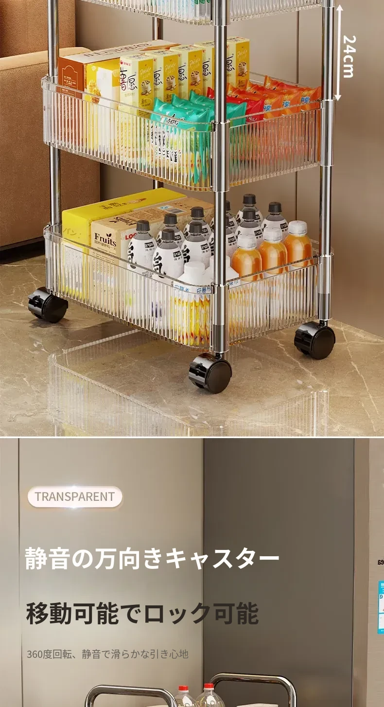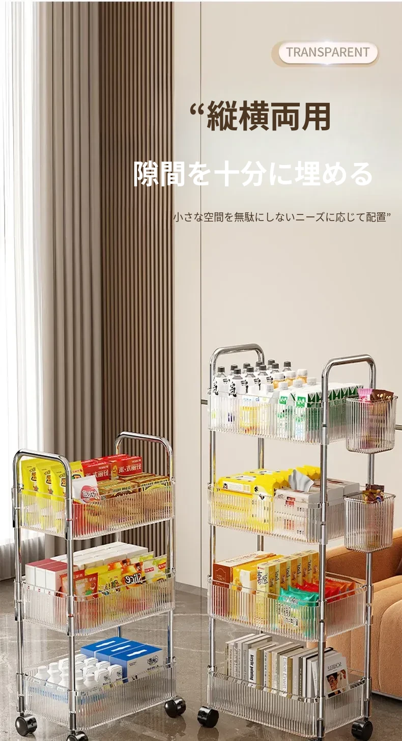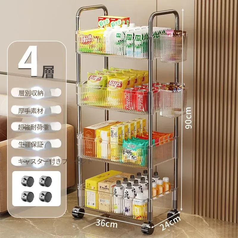 多機能キャスター付き収納ラック|リビング・キッチン・バスルームに最適!お菓子やおもちゃをすっきり整理!省スペースで便利なマルチストレージソリューション!