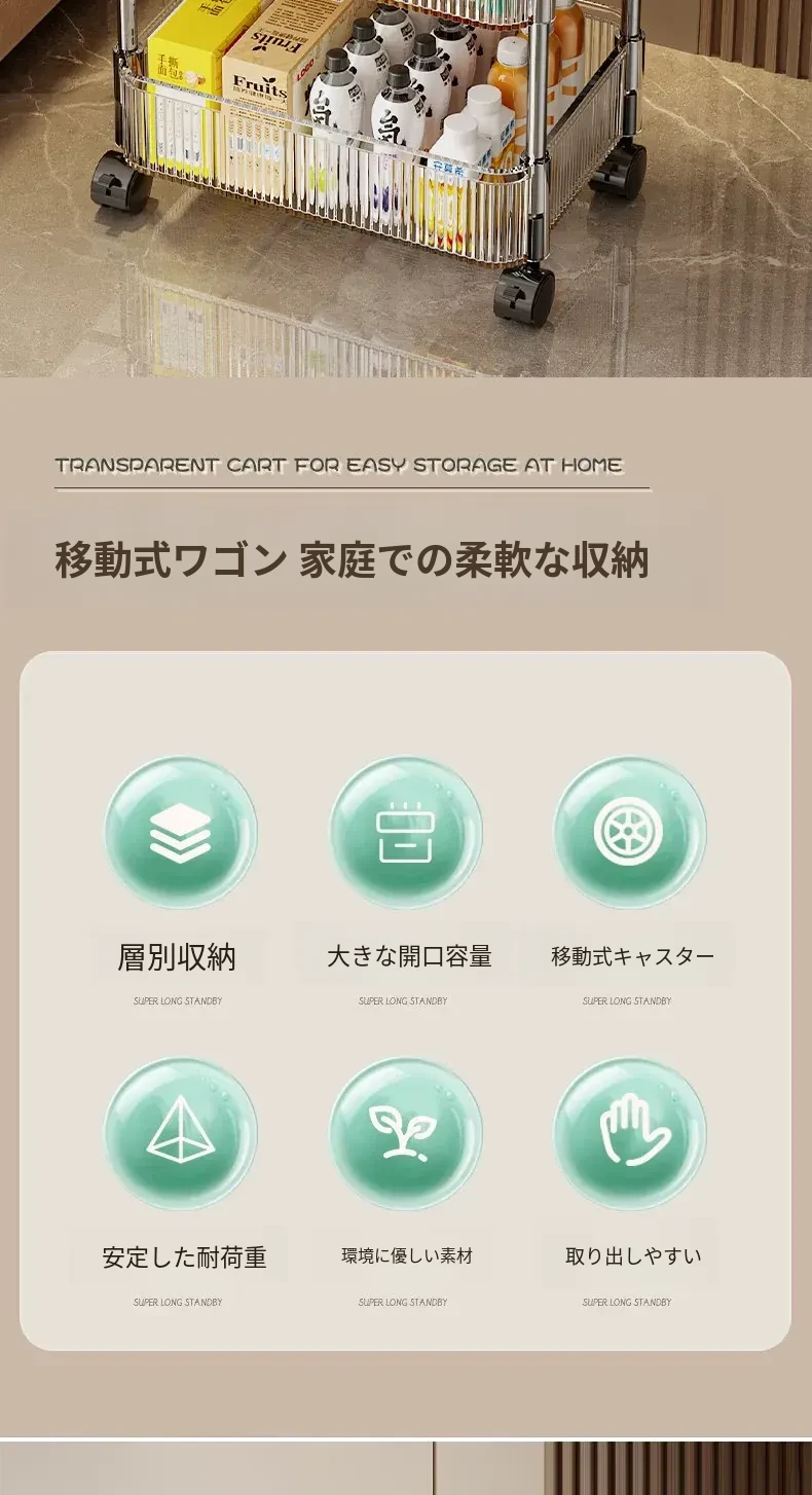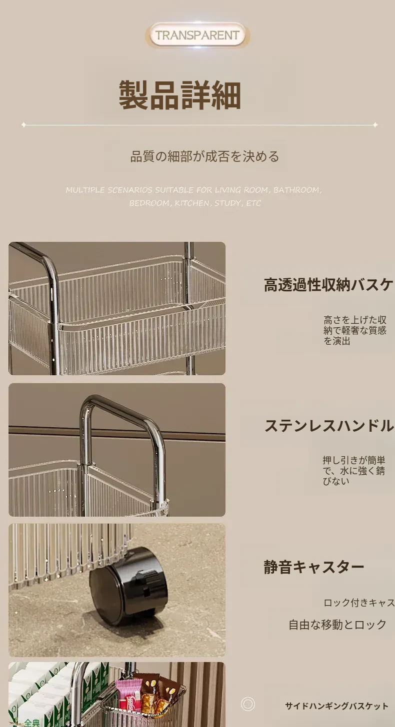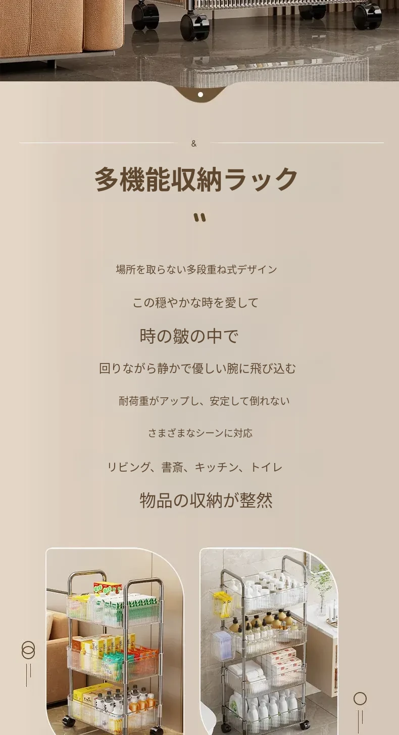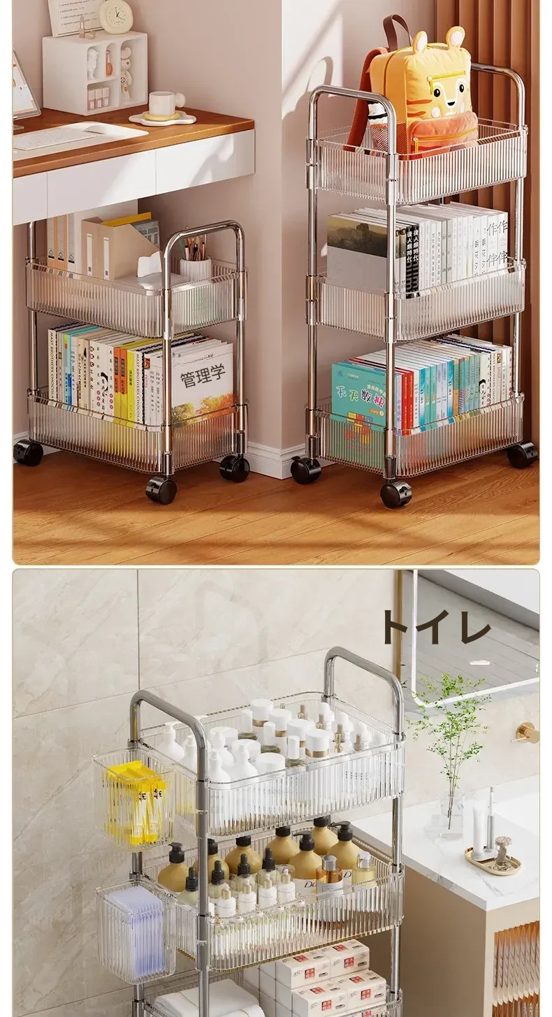 多機能キャスター付き収納ラック|リビング・キッチン・バスルームに最適!お菓子やおもちゃをすっきり整理!省スペースで便利なマルチストレージソリューション!