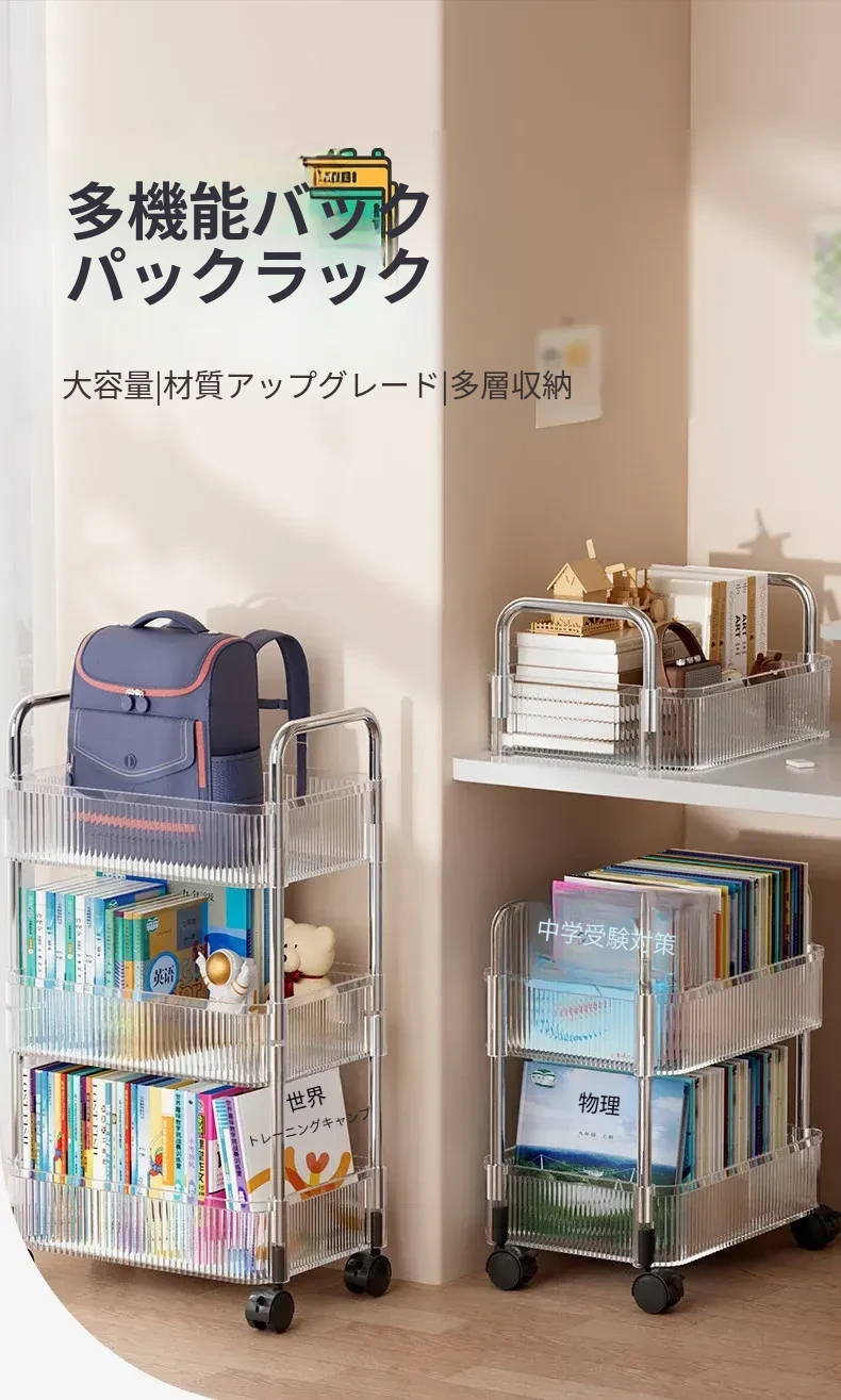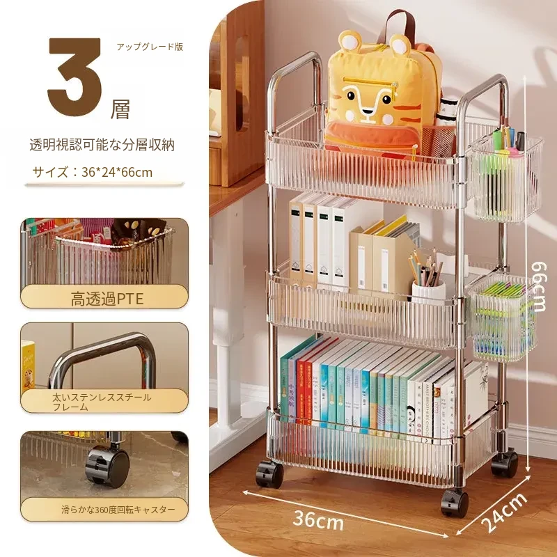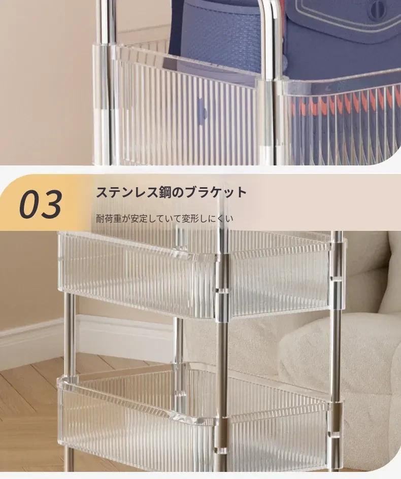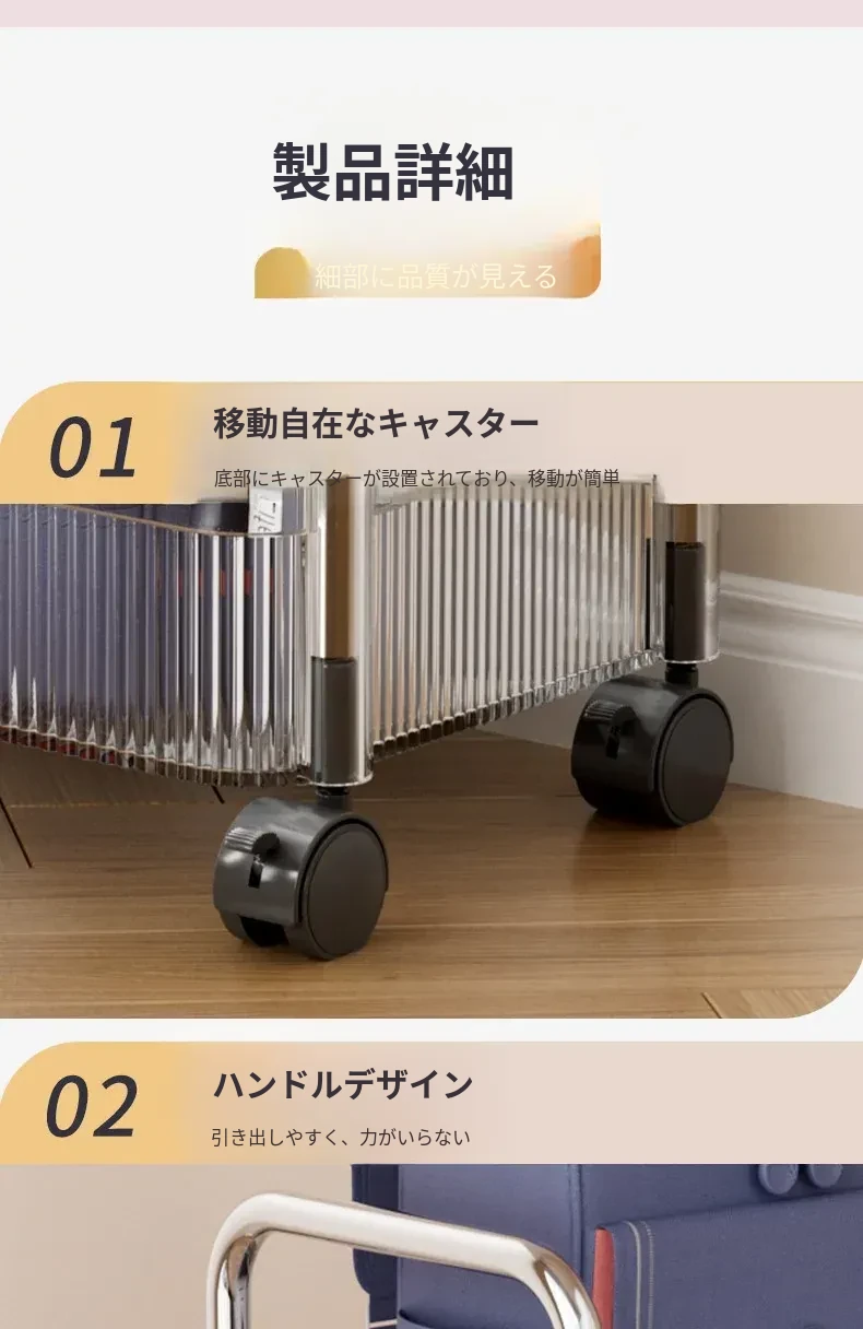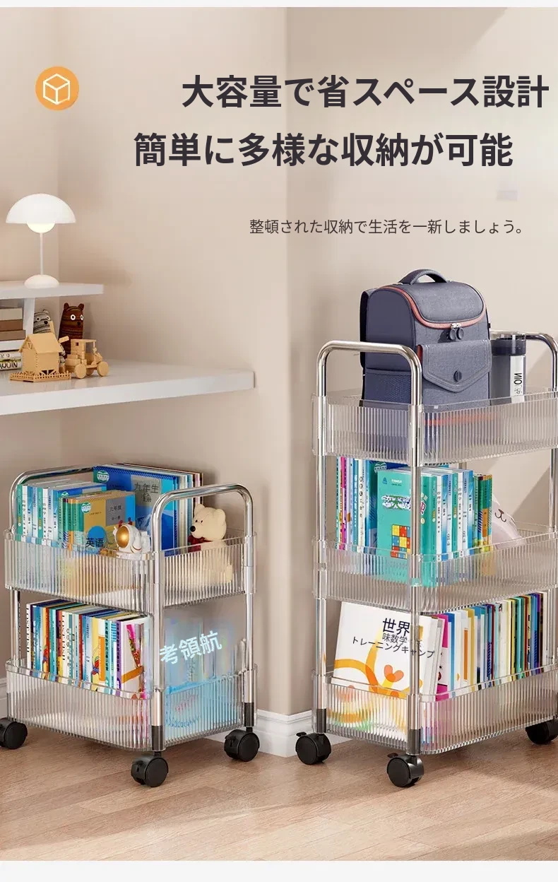 多機能キャスター付き収納ラック - リビングやキッチン、バスルームに最適なスナックやおもちゃの整理整頓を実現!省スペースでスタイリッシュなデザイン、簡単に移動可能なマルチレイヤー収納ラックです。