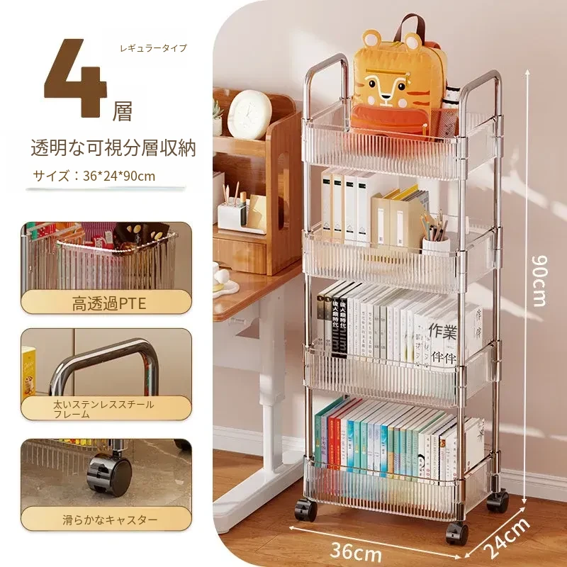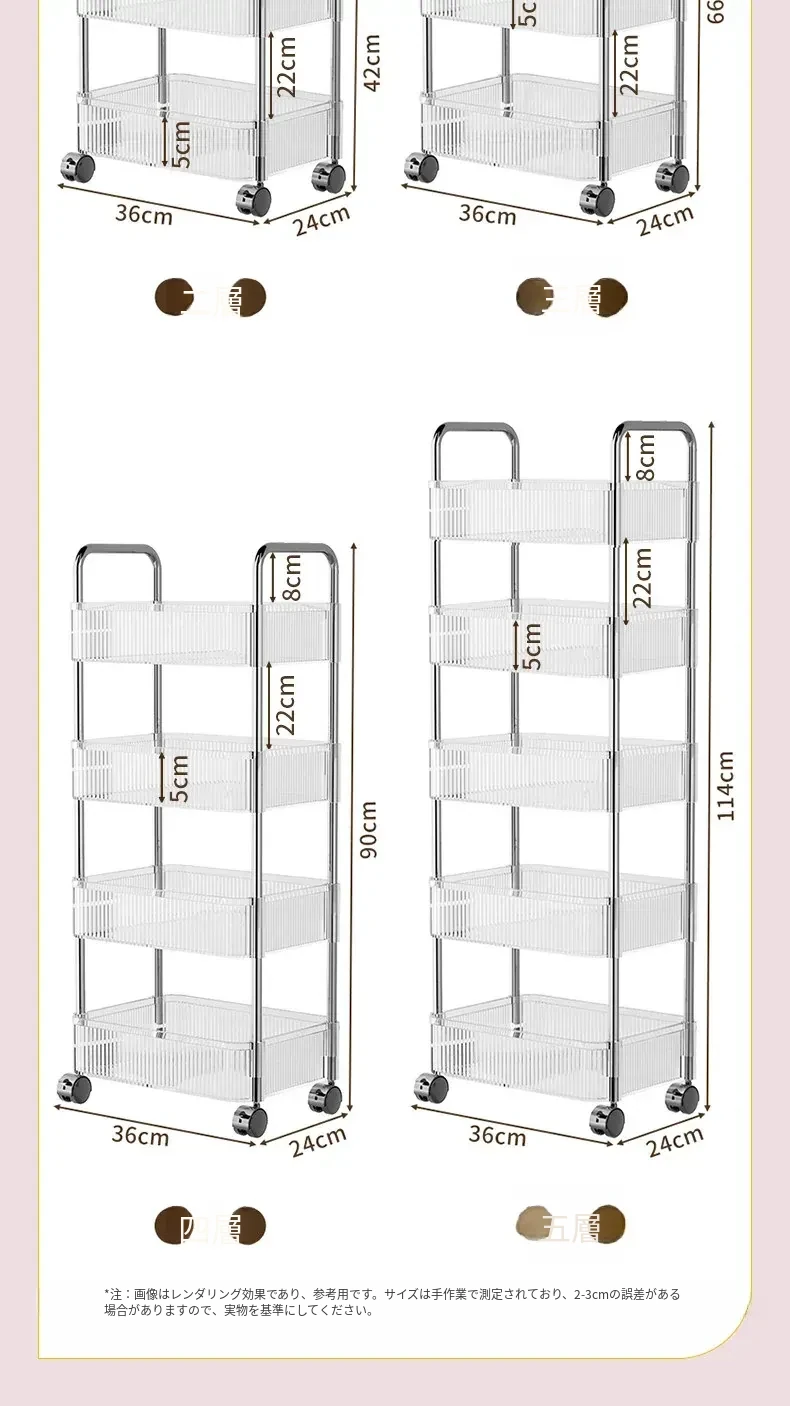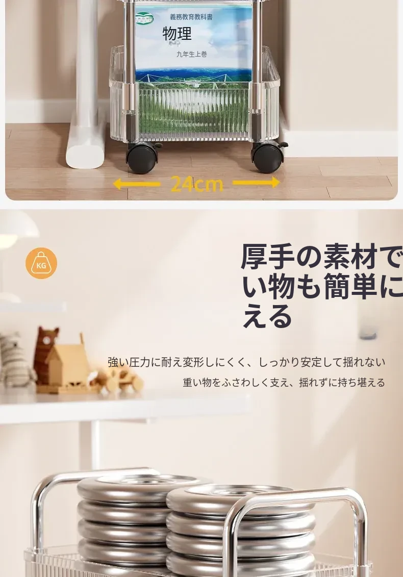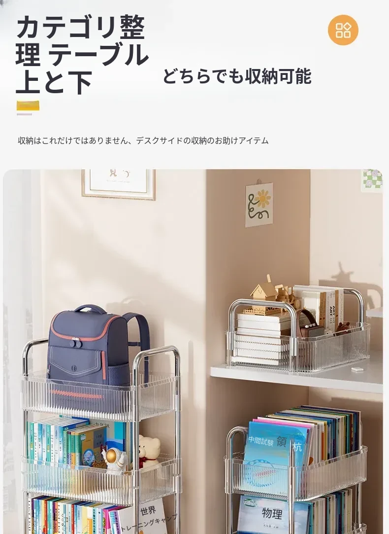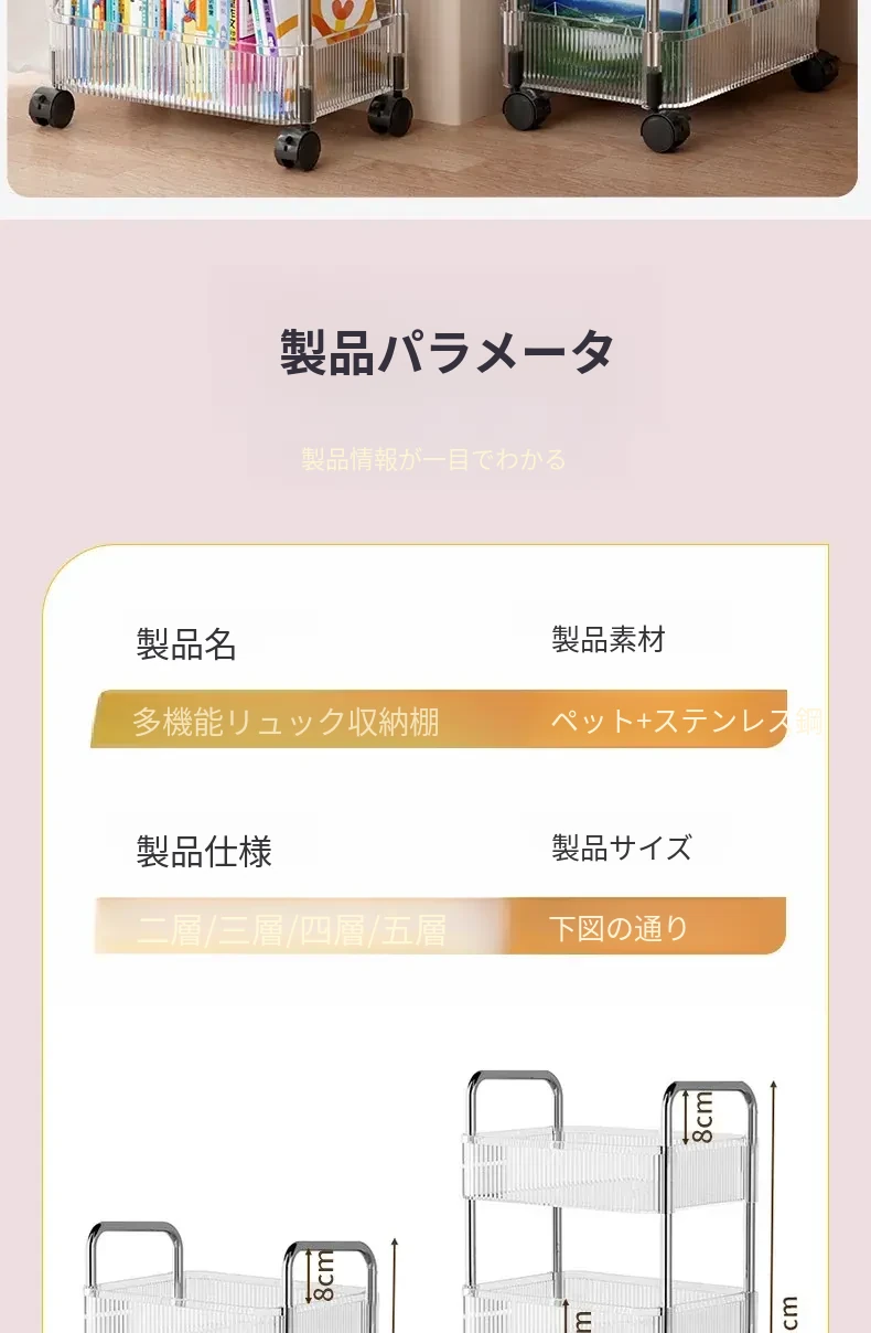 多機能キャスター付き収納ラック - リビングやキッチン、バスルームに最適なスナックやおもちゃの整理整頓を実現!省スペースでスタイリッシュなデザイン、簡単に移動可能なマルチレイヤー収納ラックです。