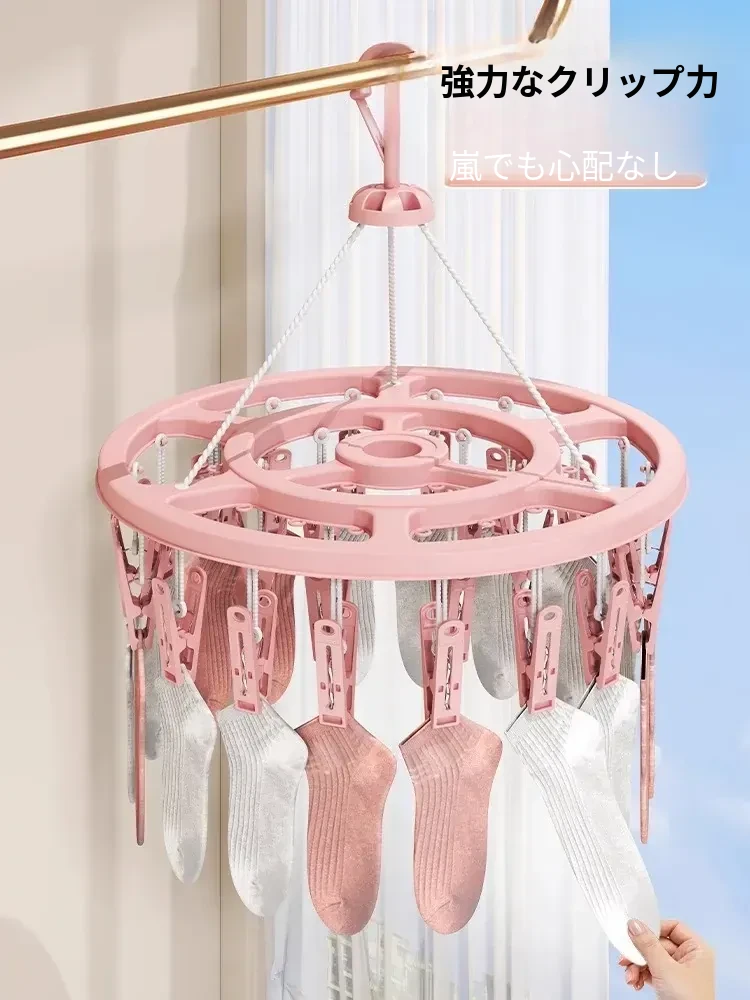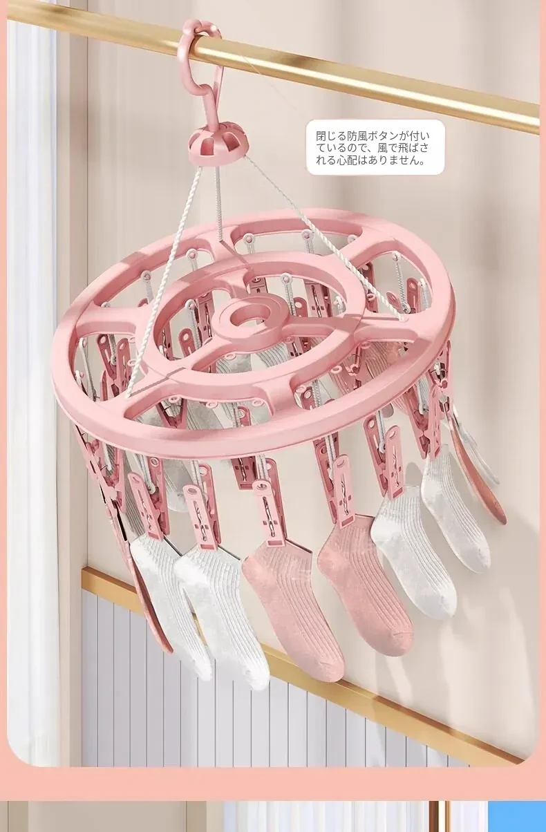 風に強い靴下干しラック!多機能クリップ付き衣類干しスタンド、家での使用に最適。下着や靴下をしっかり固定し、すっきりと乾燥!これ一つで洗濯がもっと楽に!
