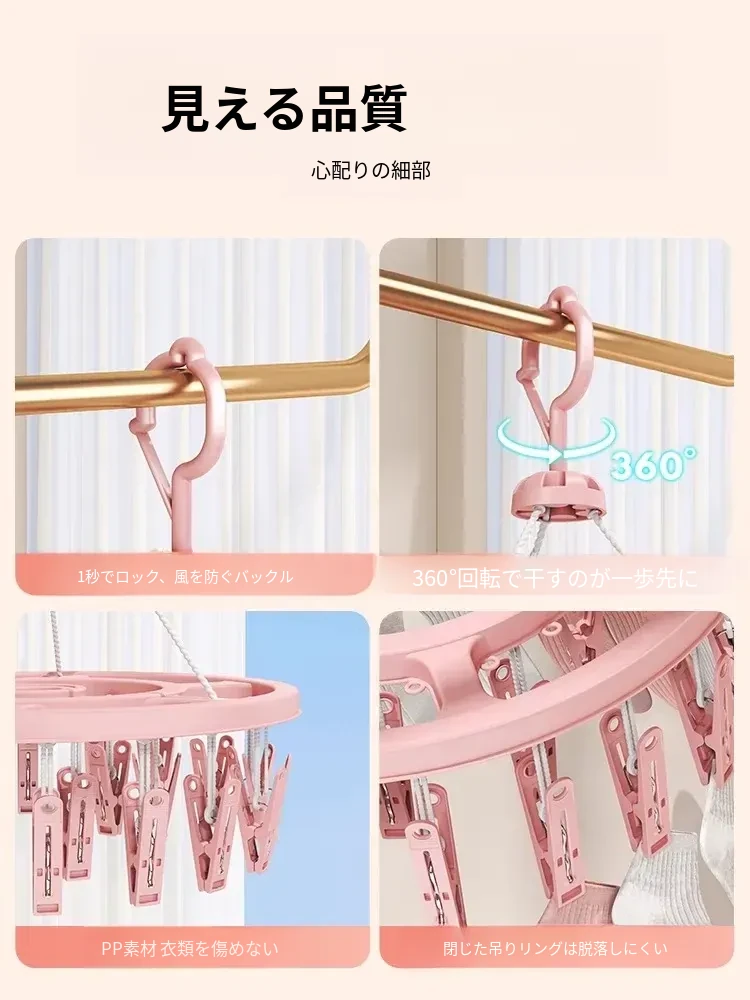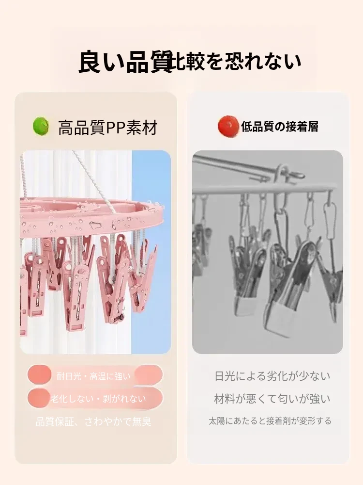 桜色24クリップ❣【強力なクリップ⭐太め・厚め⭐強風にも負けない】