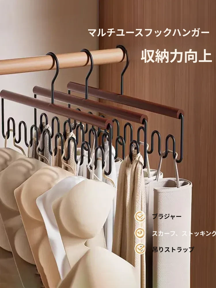 2個入り❤·ラグジュアリーなブナ材【1個で8枚の下着/キャミソールを掛けられる】
