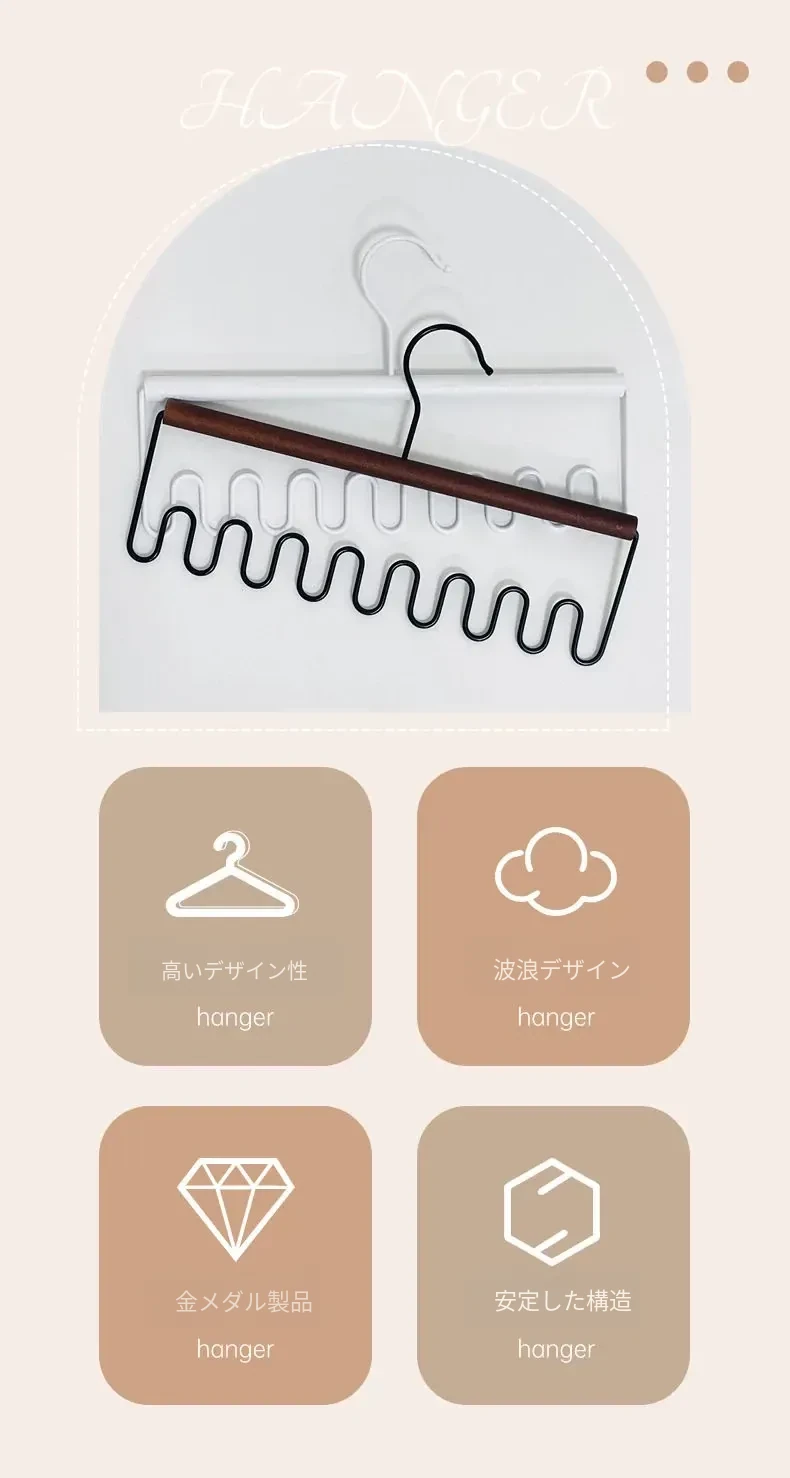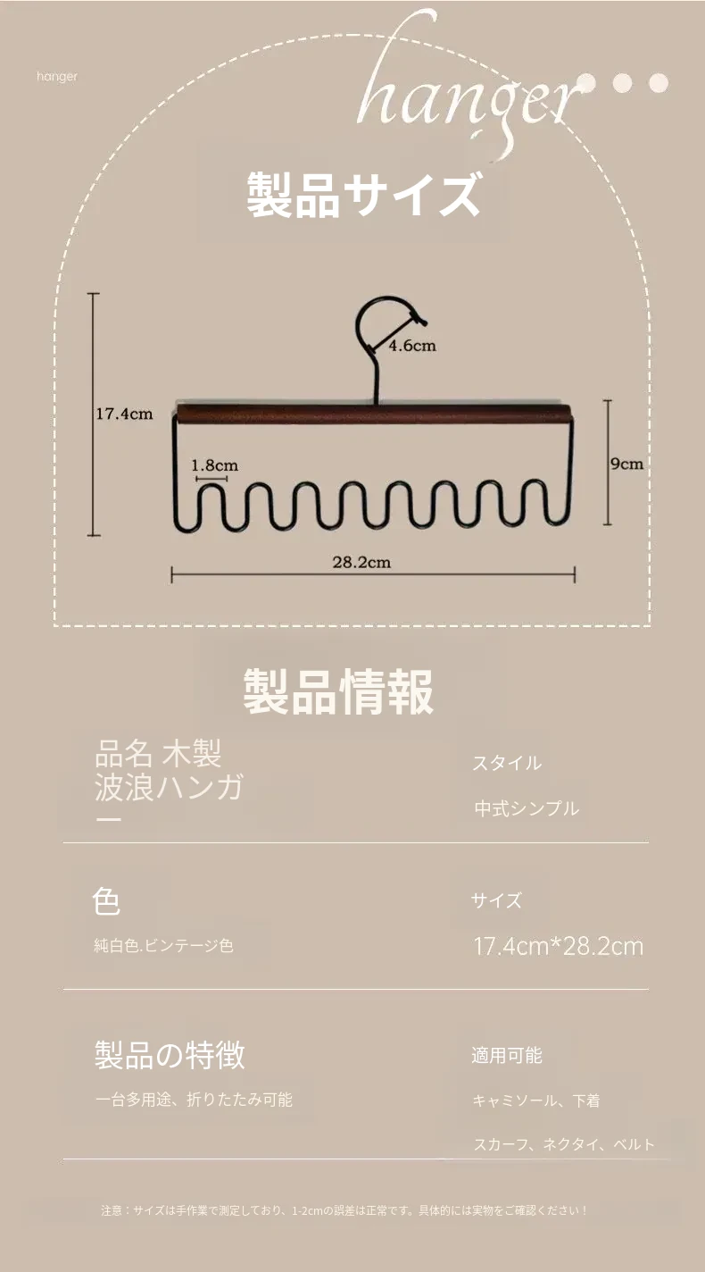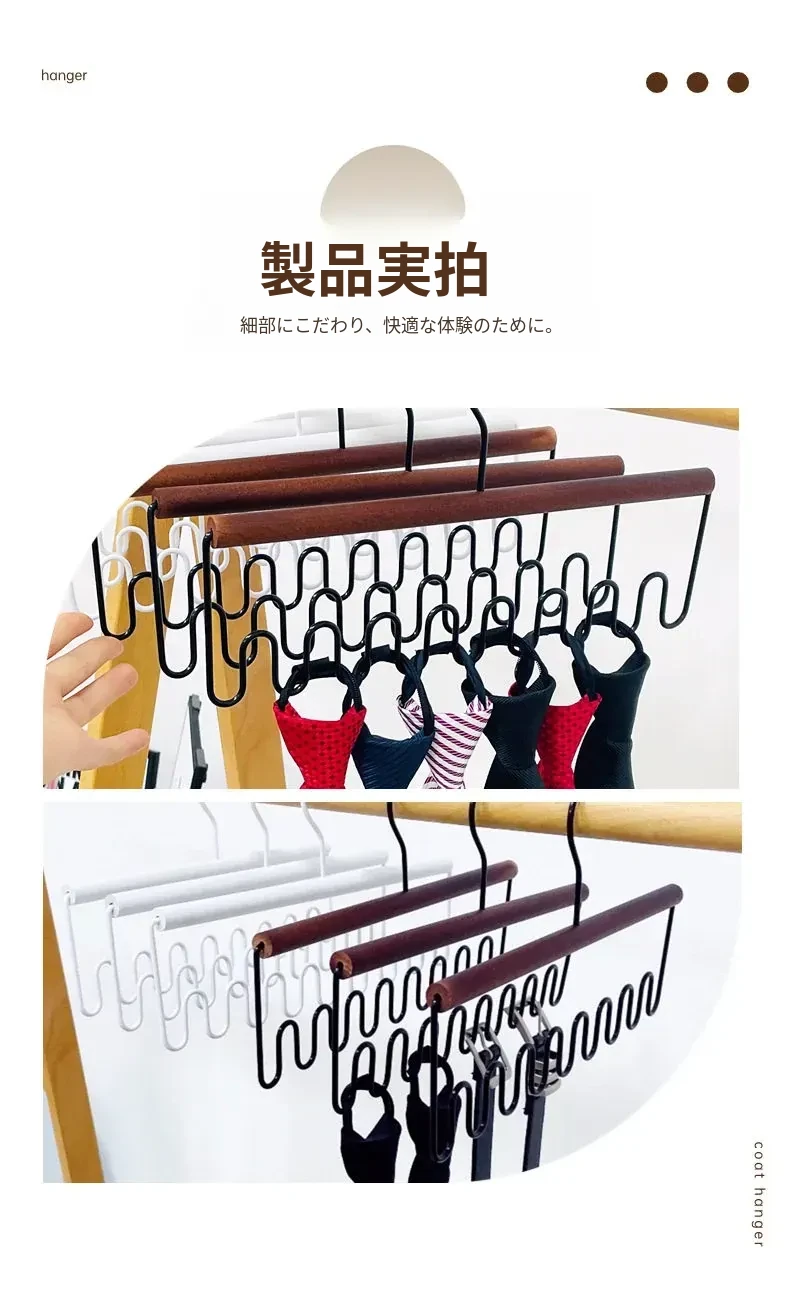 多機能キャミソールハンガー - 実用的なインナーウェア&タンクトップ用、木製フック付き!宿舎や家庭で大活躍の波型クローゼット収納アイテム!あなたのクローゼットをスマートに整理整頓!