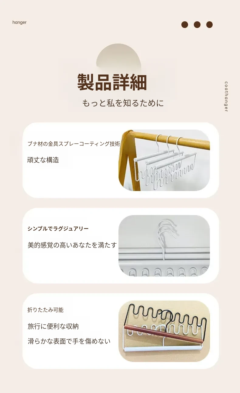 3個入り❤·ラグジュアリーなブナ材【1個で8枚の下着/キャミソールを掛けられる】