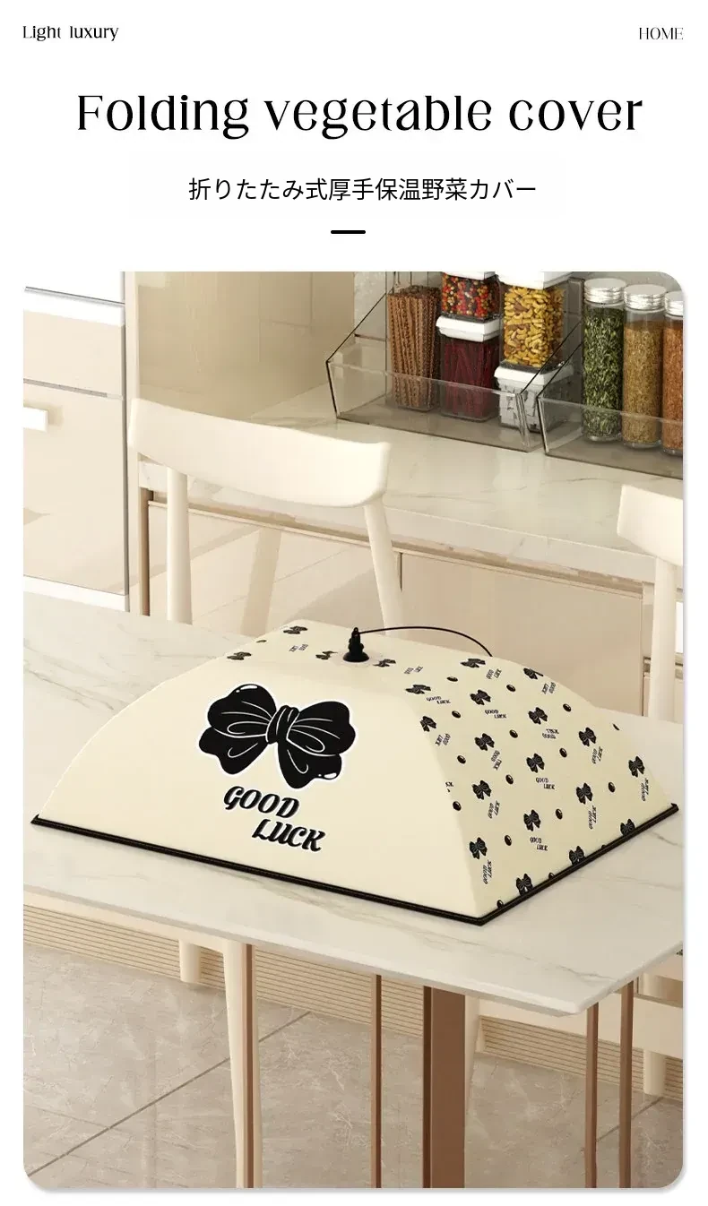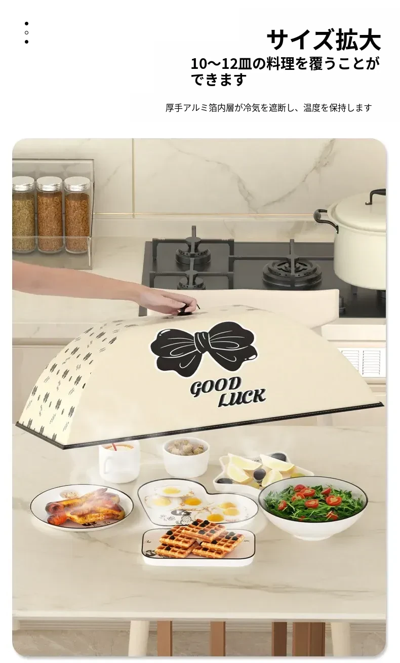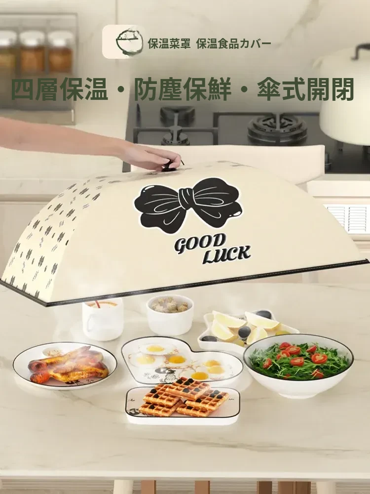 冬の食卓を華やかに!折りたたみ式の家庭用保温防塵カバー、大型厚手フードカバーで食材をしっかり守ります。冬の食事をもっと美味しく、清潔に!